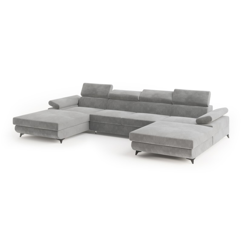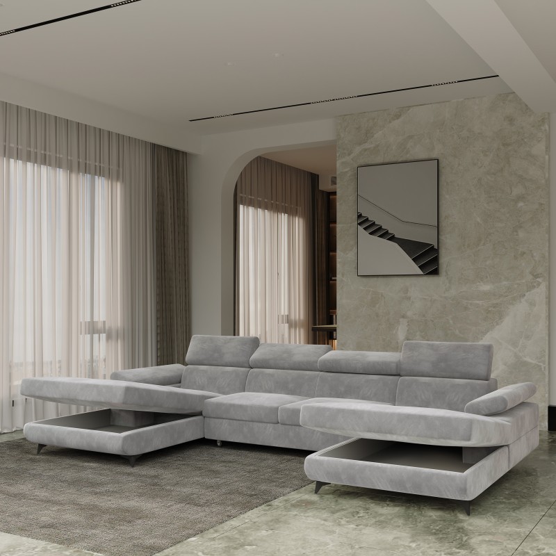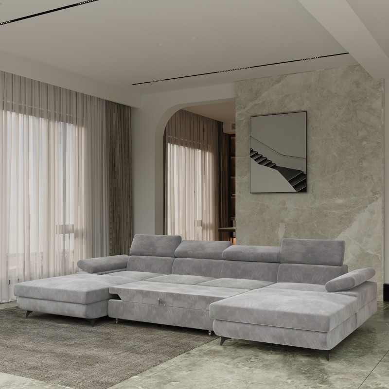 Masseno Narożnik DETTI z funkcją spania i pojemnikiem na pościel Narozniki U, Rozkładana sofa - Jasnoszary, MONOLITH 84