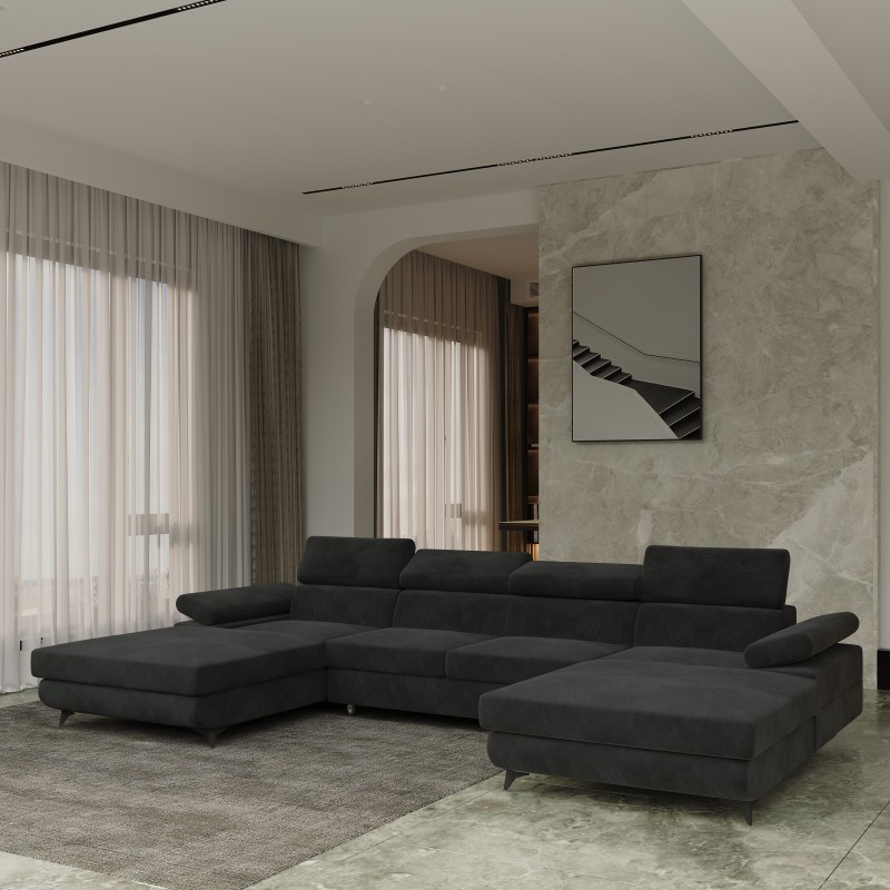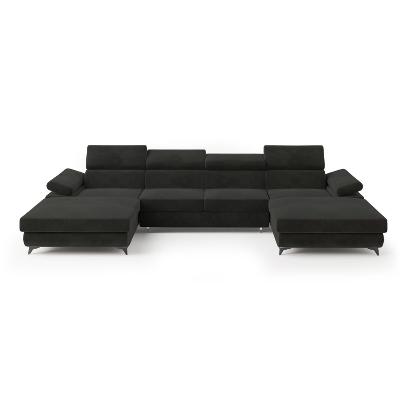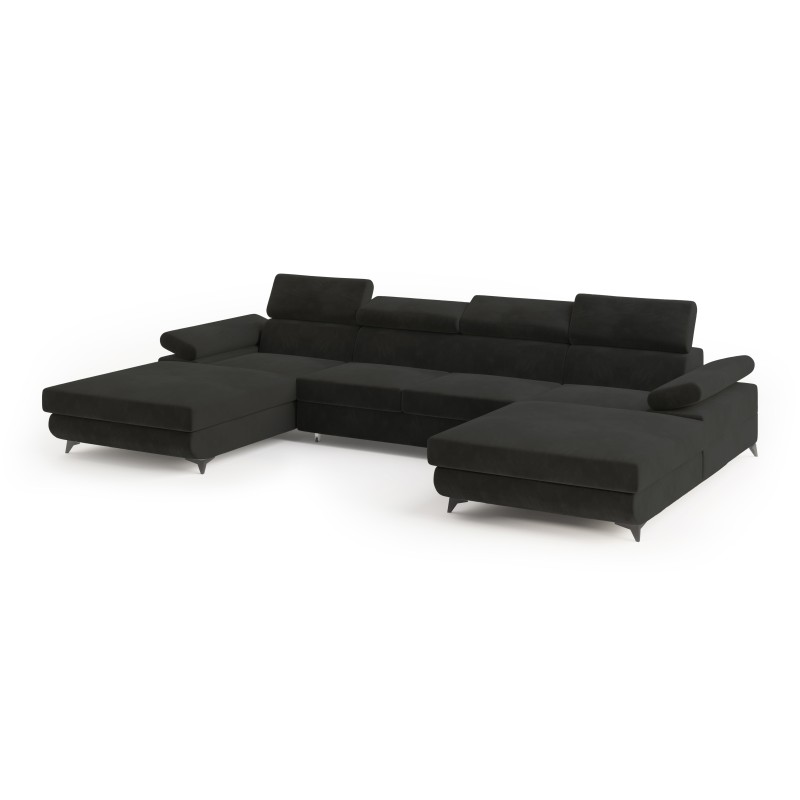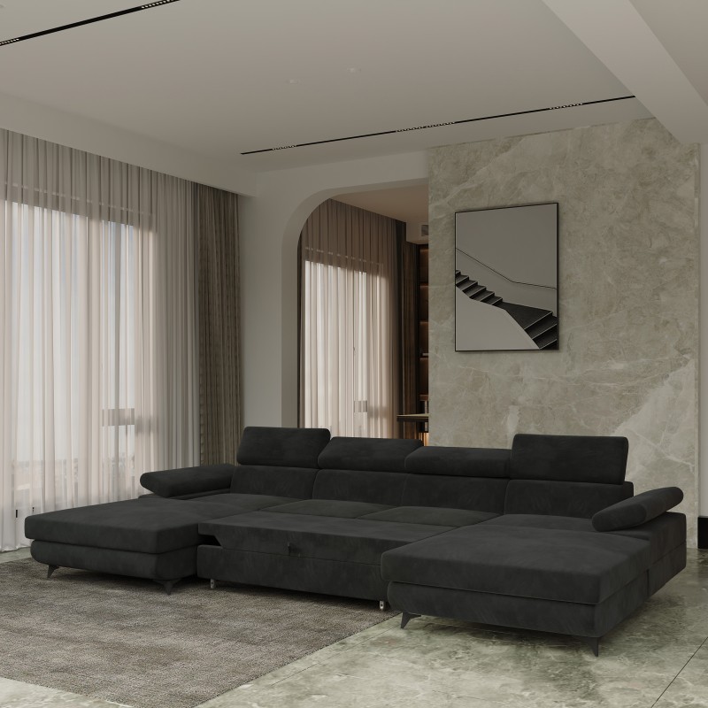 Masseno Narożnik DETTI z funkcją spania i pojemnikiem na pościel Narozniki U, Rozkładana sofa - Czarny, MONOLITH 95