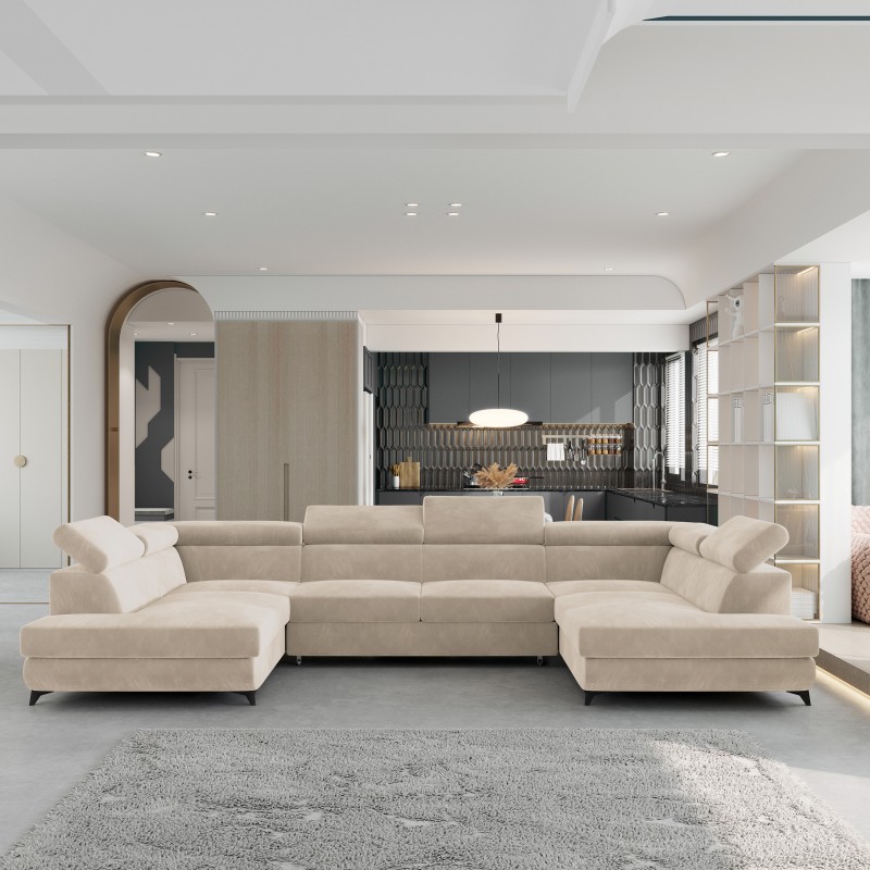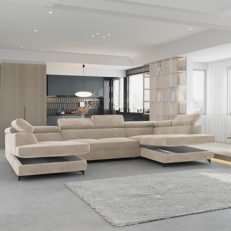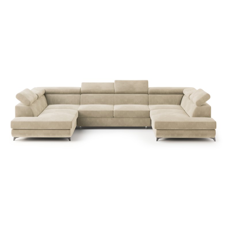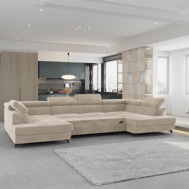 Masseno Narożnik VINTESSA z funkcją spania i pojemnikiem na pościel Narozniki U, Rozkładana sofa - Kremowy, MONOLITH 04