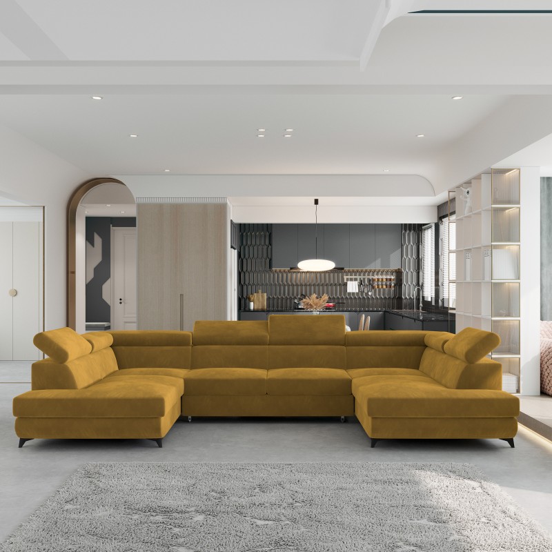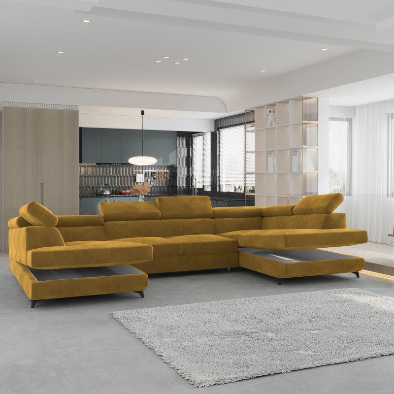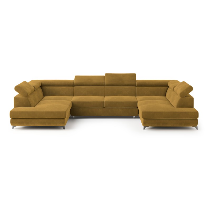 Masseno Narożnik VINTESSA z funkcją spania i pojemnikiem na pościel Narozniki U, Rozkładana sofa - Żółty, MONOLITH 48