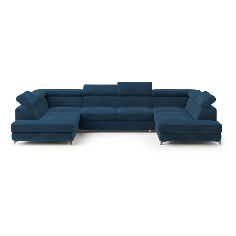 Masseno Narożnik VINTESSA z funkcją spania i pojemnikiem na pościel Narozniki U, Rozkładana sofa - Niebieski, MONOLITH 77