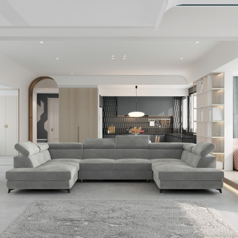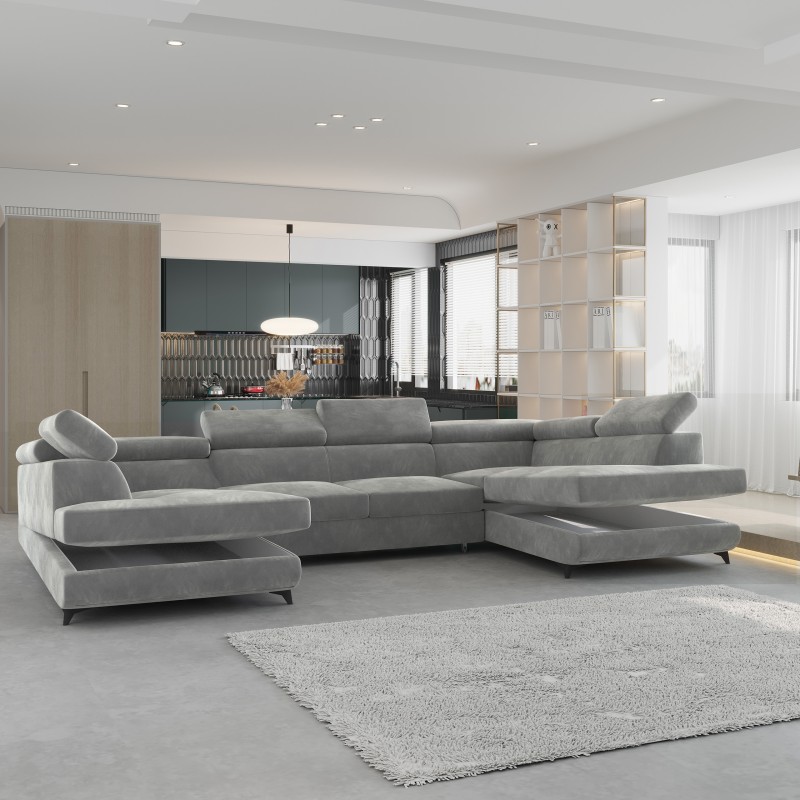 Masseno Narożnik VINTESSA z funkcją spania i pojemnikiem na pościel Narozniki U, Rozkładana sofa - Jasnoszary, MONOLITH 84