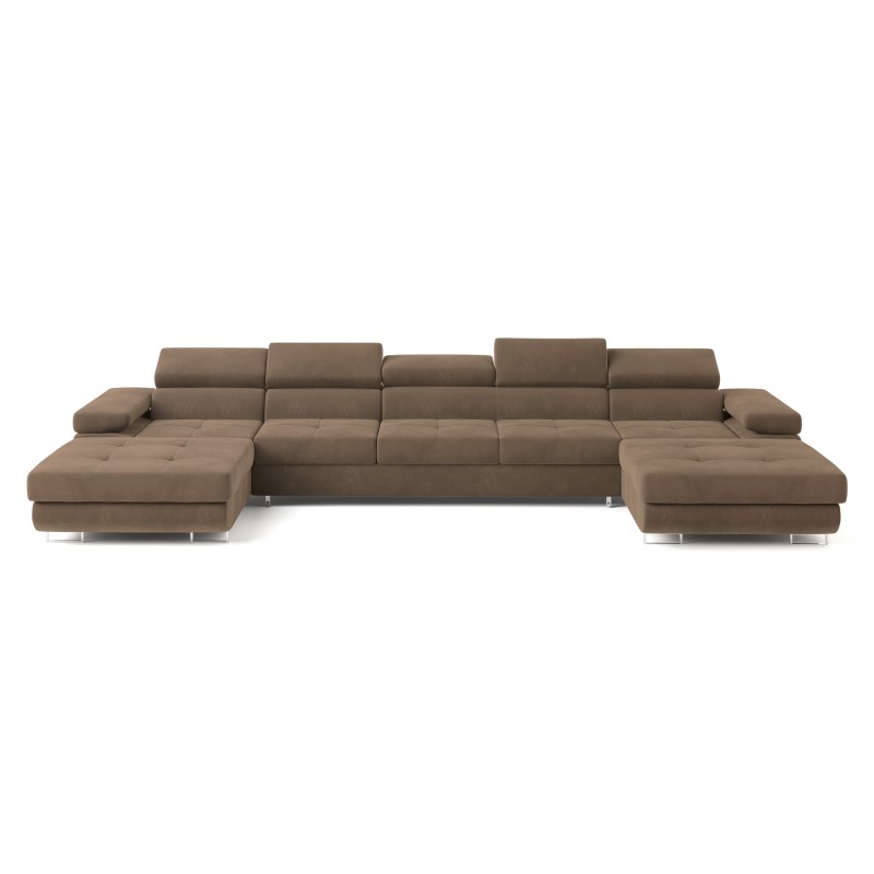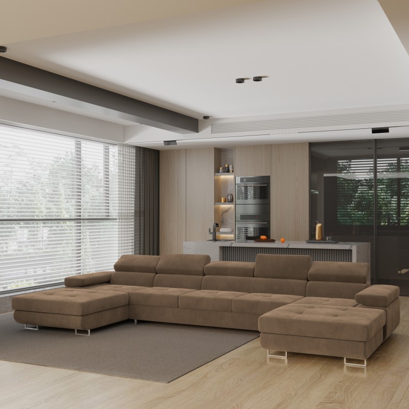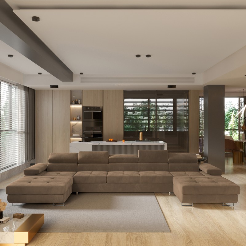 Masseno Narożnik OMBRA z funkcją spania i pojemnikiem na pościel Narozniki U, Rozkładana sofa - Beżowy, MONOLITH 09