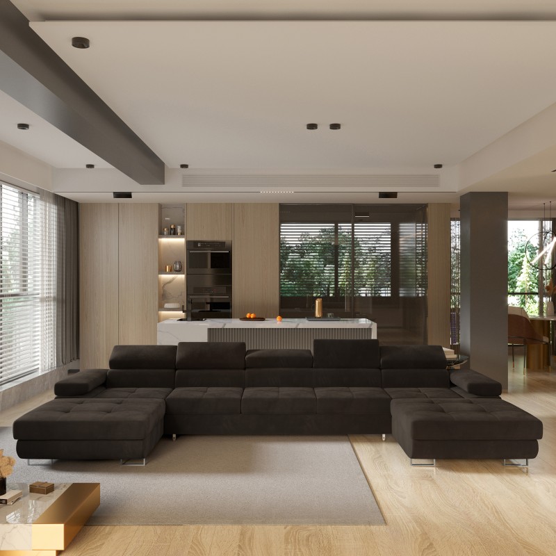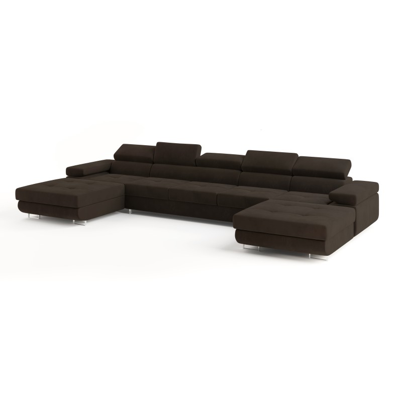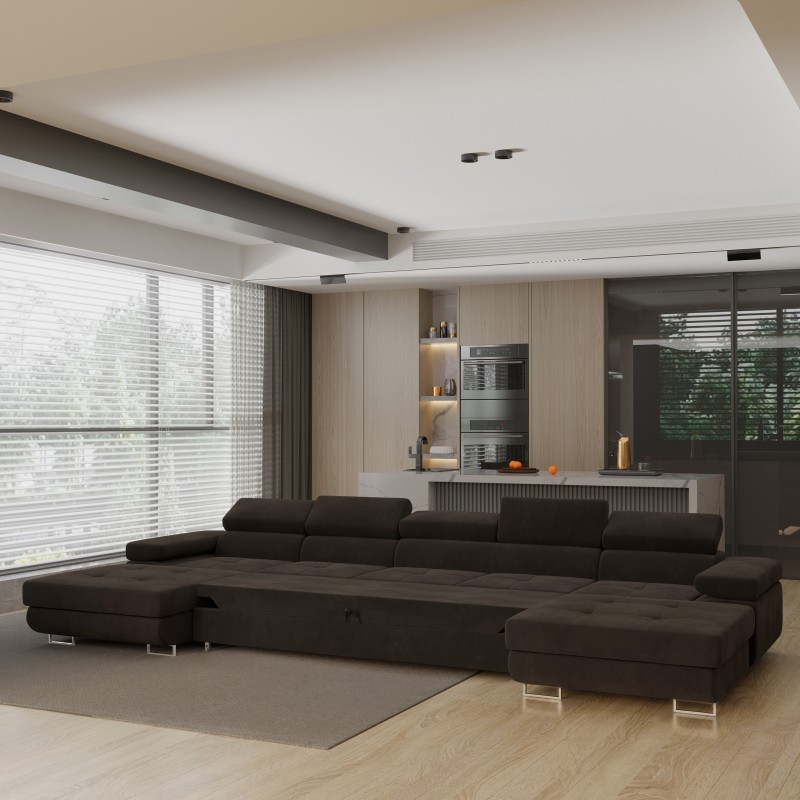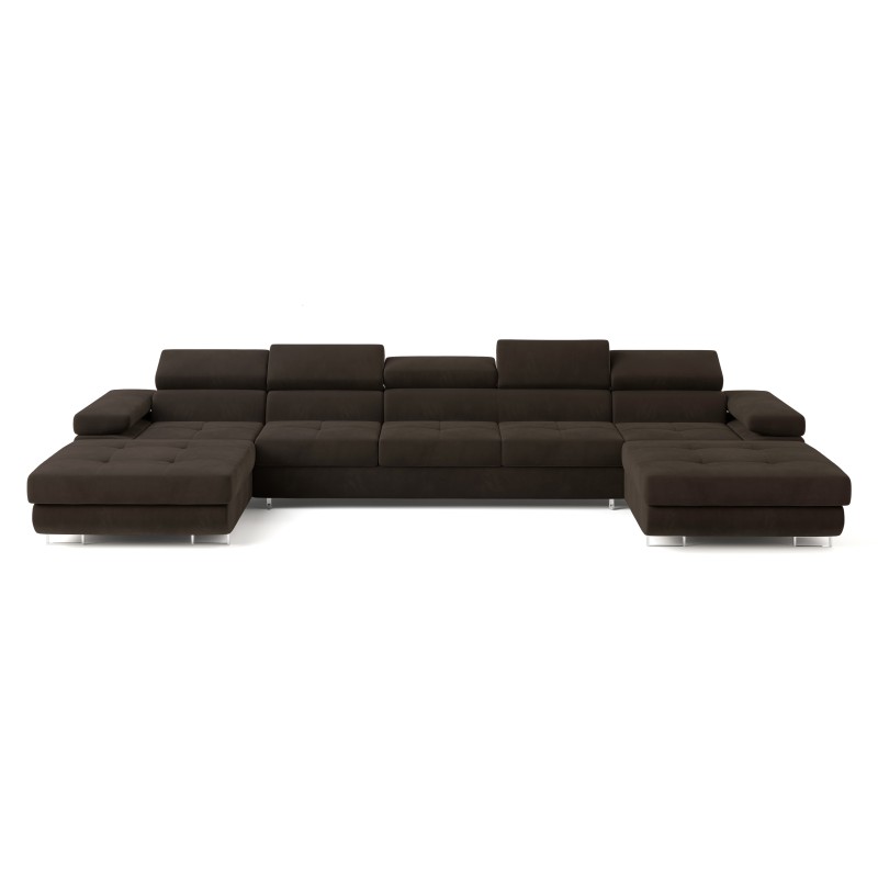 Masseno Narożnik OMBRA z funkcją spania i pojemnikiem na pościel Narozniki U, Rozkładana sofa - Brązowy, MONOLITH 29