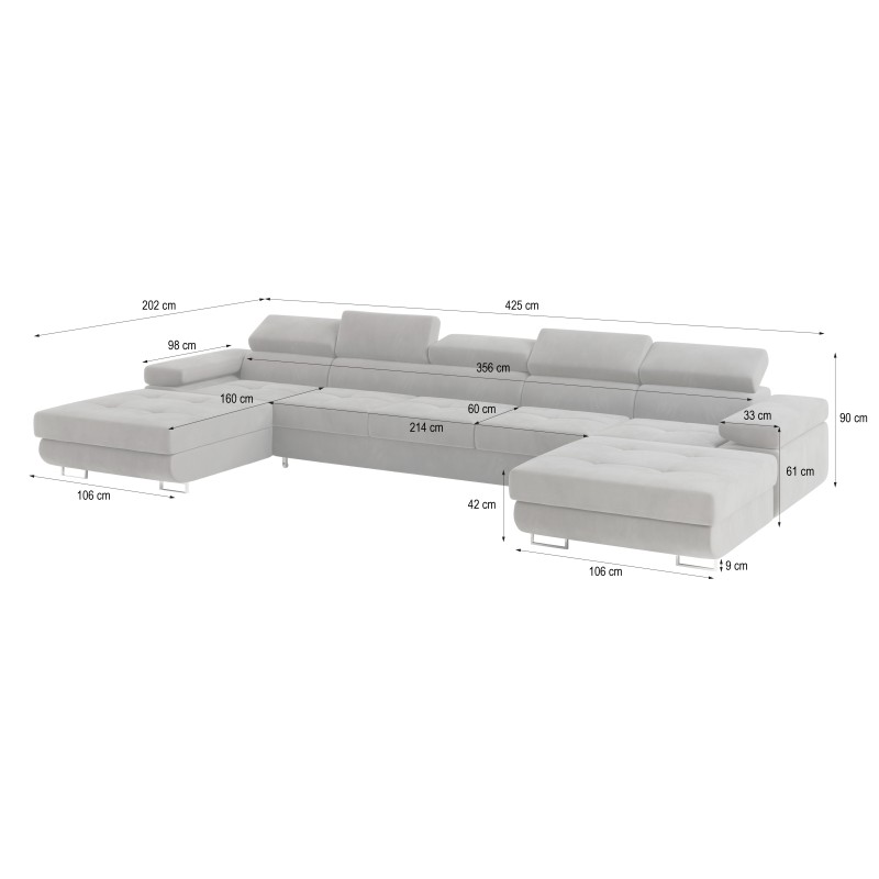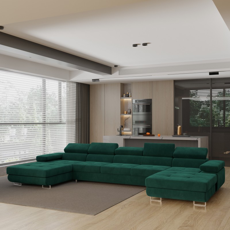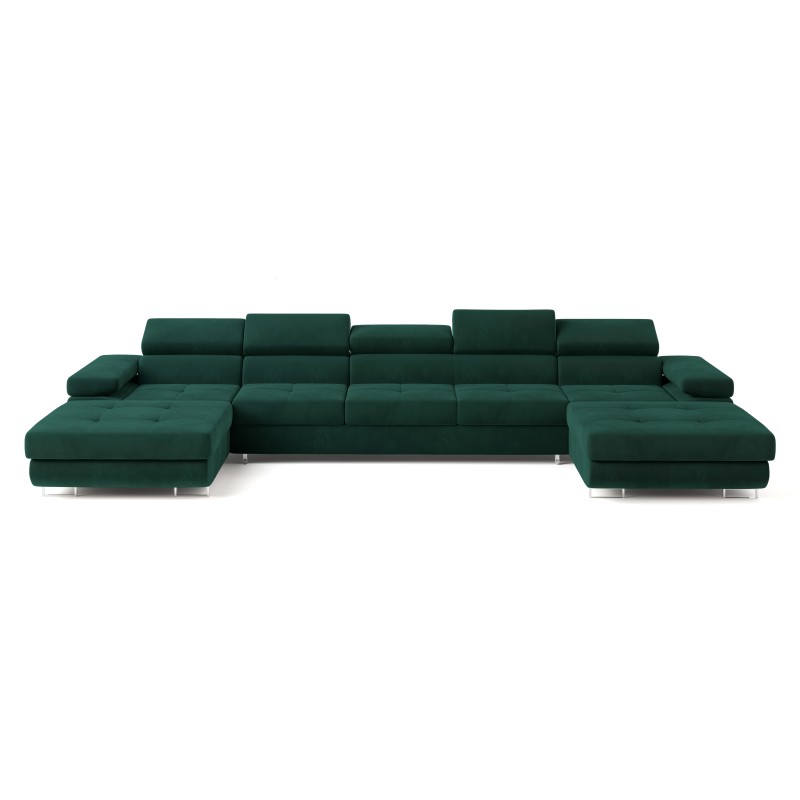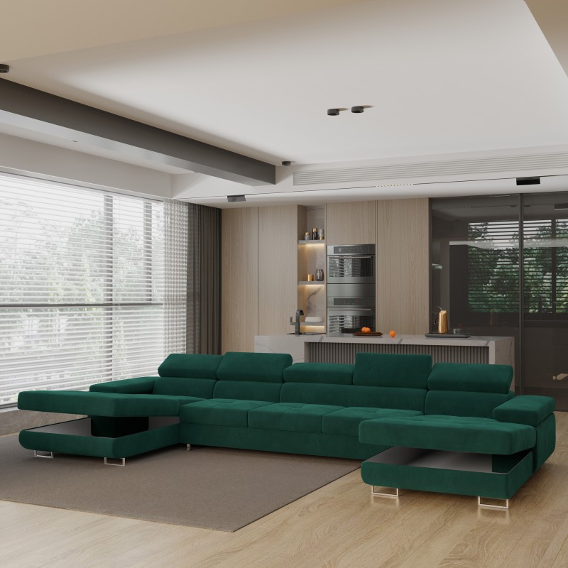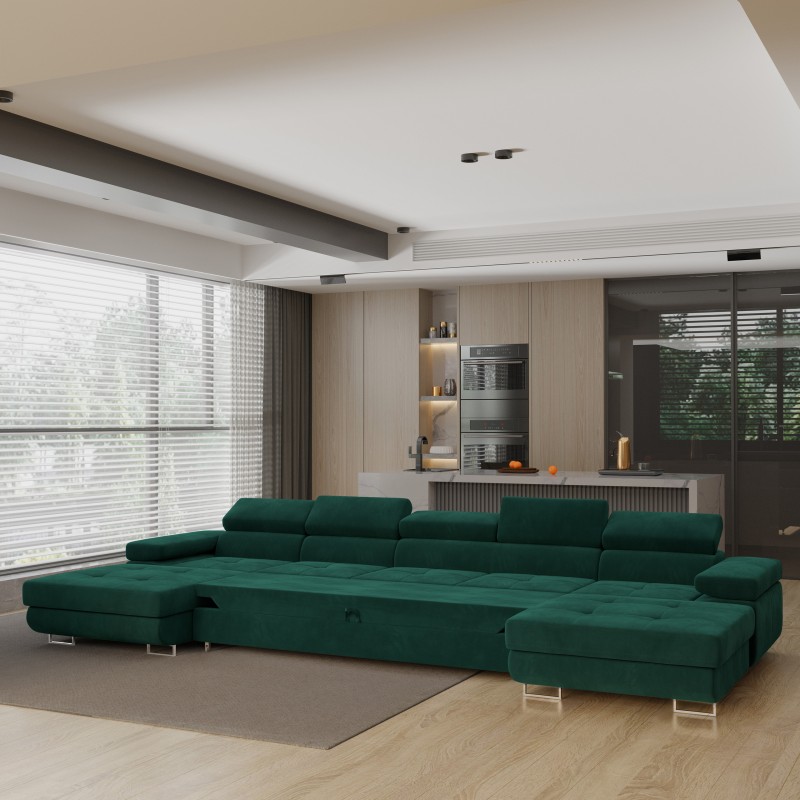 Masseno Narożnik OMBRA z funkcją spania i pojemnikiem na pościel Narozniki U, Rozkładana sofa - Zielony, MONOLITH 37