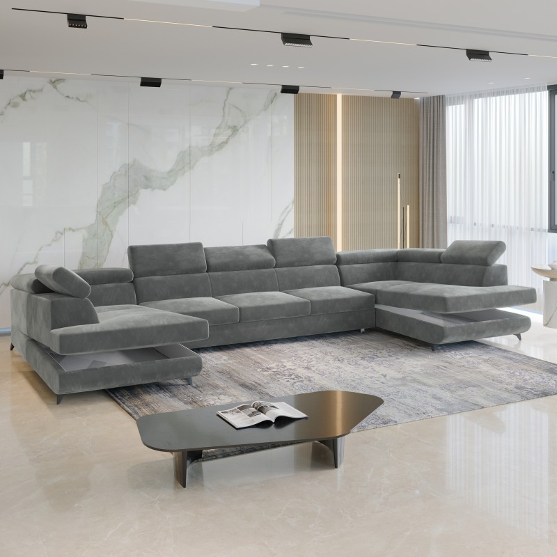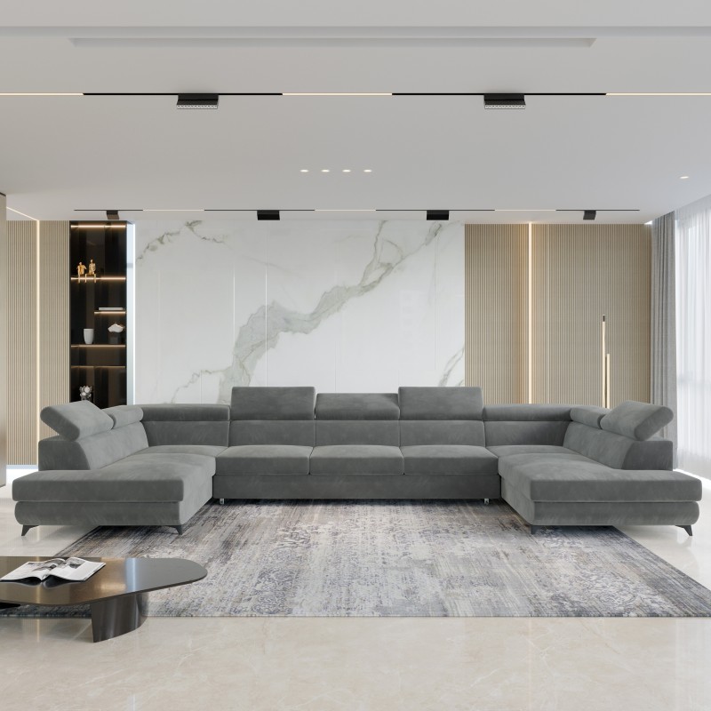 Poznaj narożnik URMANO – stworzony, by stać się sercem Twojego domu. To synonim wygody, funkcjonalności i wyjątkowego designu, który odmieni każde wnętrze. Dzięki przestronnemu kształtowi litery "U" i dużej powierzchni siedzenia, idealnie sprawdzi się zarówno podczas codziennego relaksu, jak i spotkań w gronie najbliższych. URMANO to nowoczesny narożnik do salonu, który łączy luksusowy wygląd ze sprawdzonymi rozwiązaniami dla maksymalnego komfortu.