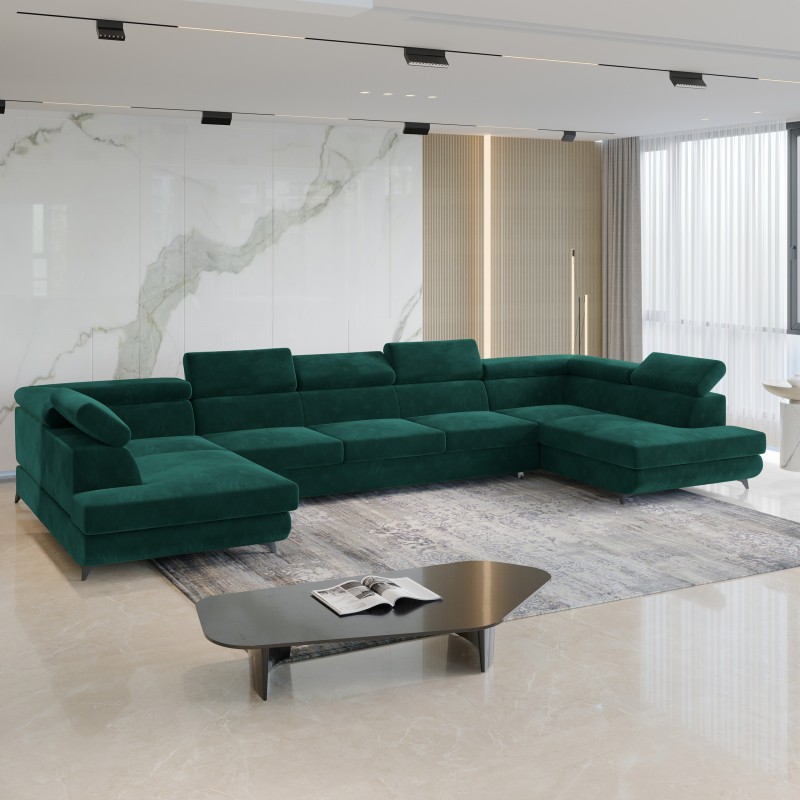 Poznaj narożnik URMANO – stworzony, by stać się sercem Twojego domu. To synonim wygody, funkcjonalności i wyjątkowego designu, który odmieni każde wnętrze. Dzięki przestronnemu kształtowi litery "U" i dużej powierzchni siedzenia, idealnie sprawdzi się zarówno podczas codziennego relaksu, jak i spotkań w gronie najbliższych. URMANO to nowoczesny narożnik do salonu, który łączy luksusowy wygląd ze sprawdzonymi rozwiązaniami dla maksymalnego komfortu.