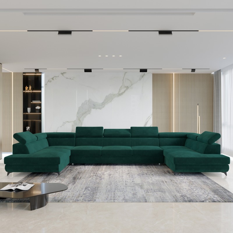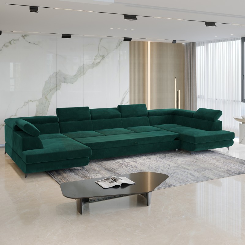 Masseno Narożnik URMANO z funkcją spania i pojemnikiem na pościel Narozniki U, Rozkładana sofa - Zielony, MONOLITH 37