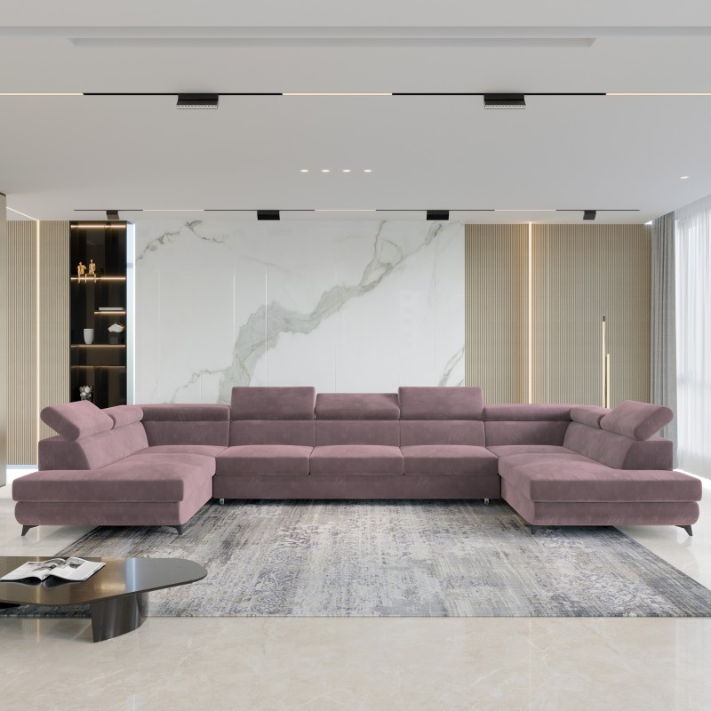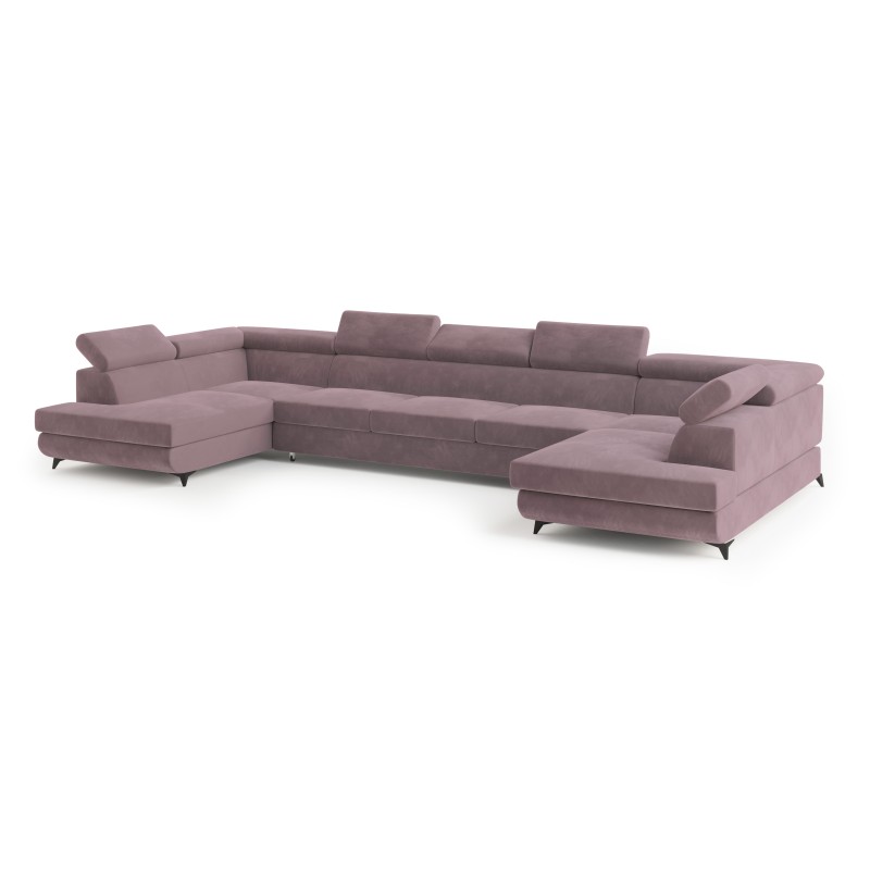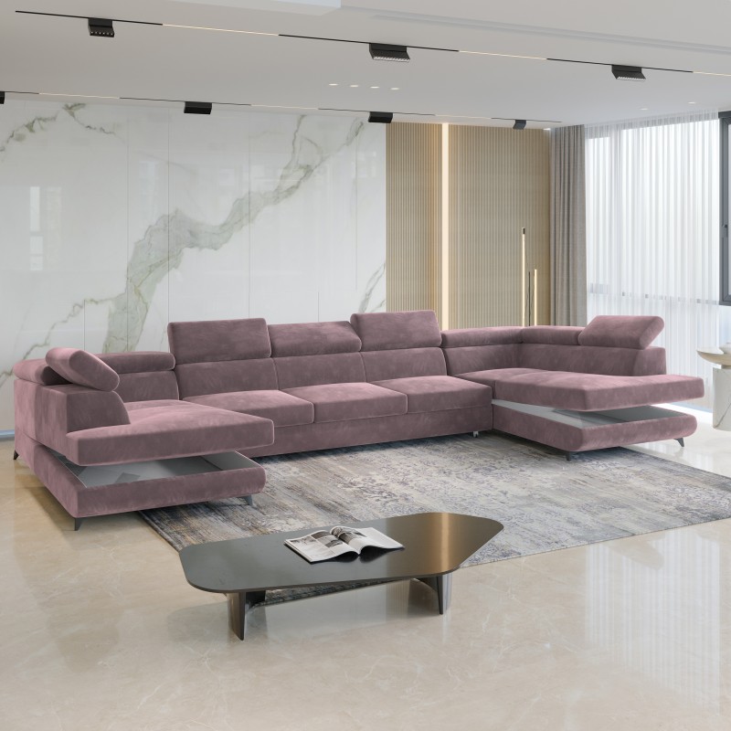 Masseno Narożnik URMANO z funkcją spania i pojemnikiem na pościel Narozniki U, Rozkładana sofa - Wrzosowy, MONOLITH 62