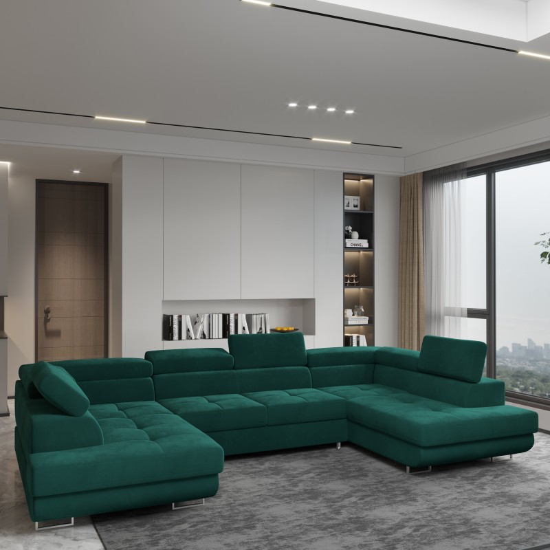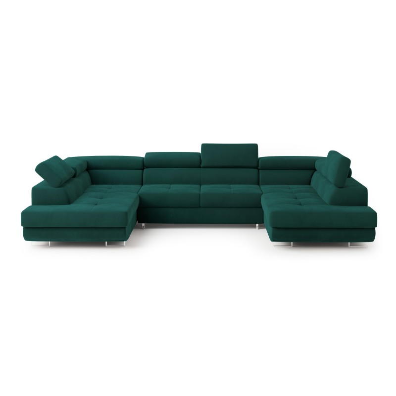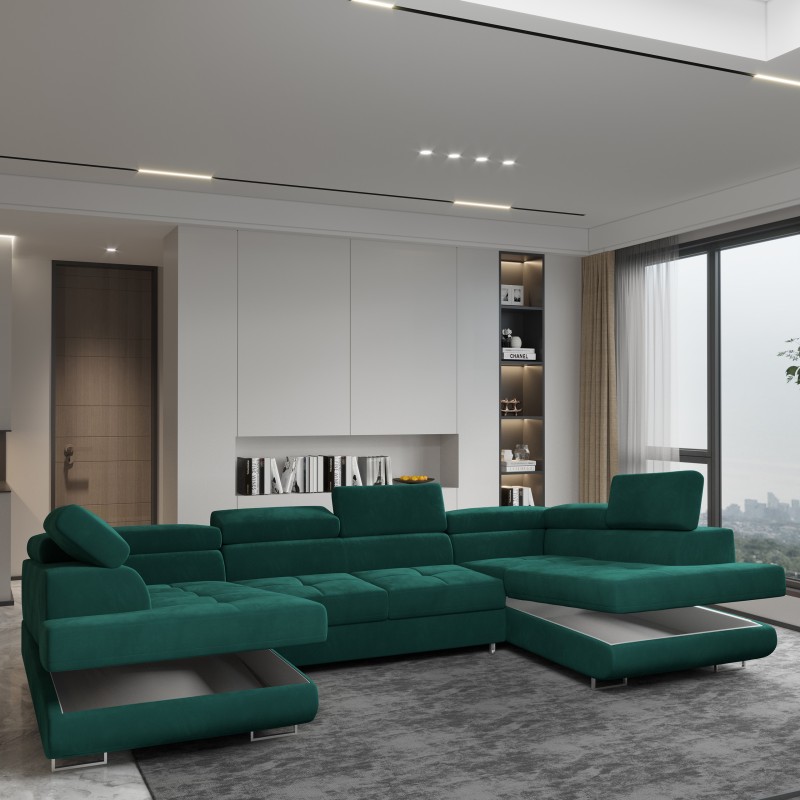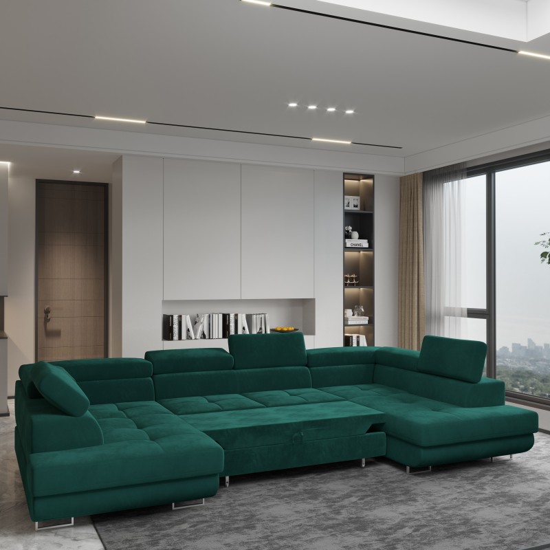 Masseno Narożnik RAGGIO z funkcją spania i pojemnikiem na pościel Narozniki U, Rozkładana sofa - Zielony, MONOLITH 37
