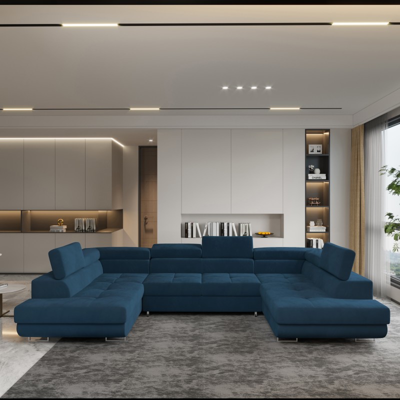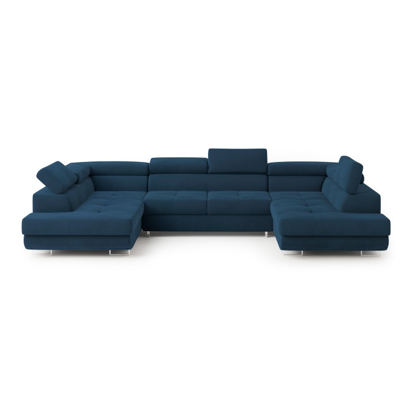 Masseno Narożnik RAGGIO z funkcją spania i pojemnikiem na pościel Narozniki U, Rozkładana sofa - Niebieski, MONOLITH 77