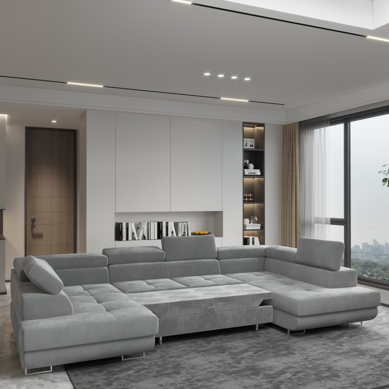 Poznaj RAGGIO – przestronny i elegancki nowoczesny narożnik do salonu, który został stworzony, by stać się sercem Twojego domu. Jego imponujące rozmiary i kształt litery „U” pozwalają na swobodny relaks całej rodzinie i gościom. To mebel, który harmonijnie łączy luksusowy design z wyjątkową funkcjonalnością, tworząc idealne miejsce do spędzania wspólnie czasu i celebrowania codziennych chwil.
