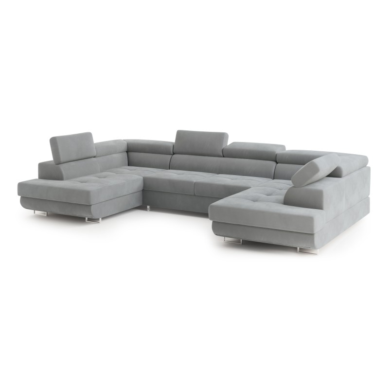 Masseno Narożnik RAGGIO z funkcją spania i pojemnikiem na pościel Narozniki U, Rozkładana sofa - Jasnoszary, MONOLITH 84