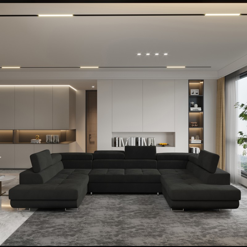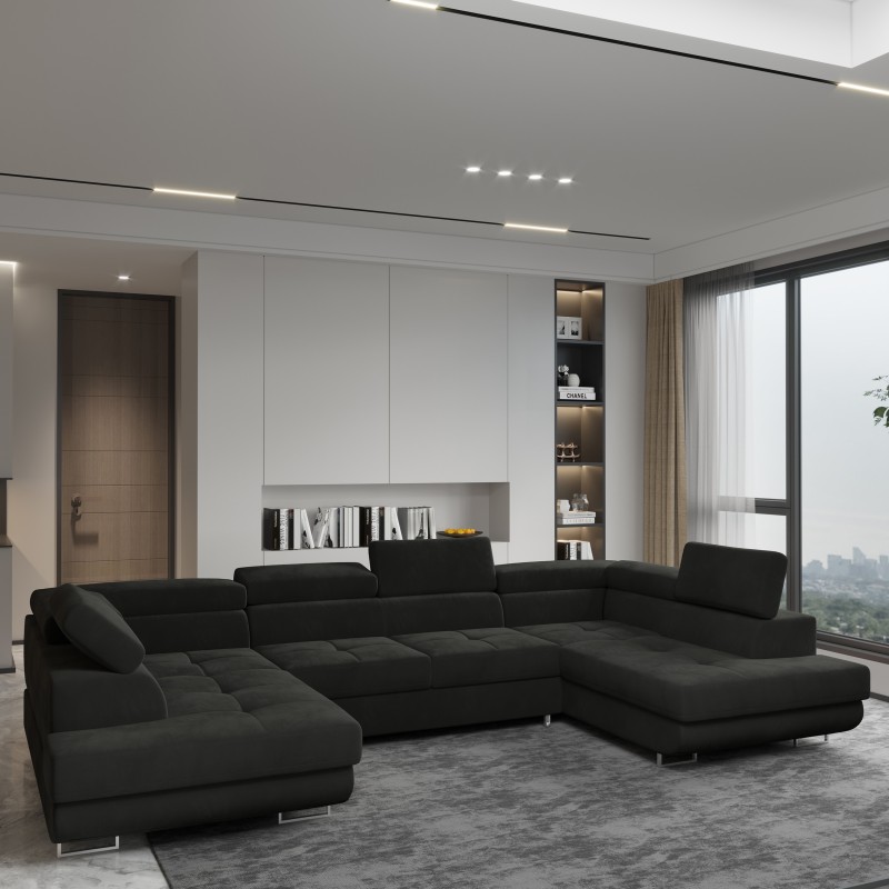 Poznaj RAGGIO – przestronny i elegancki nowoczesny narożnik do salonu, który został stworzony, by stać się sercem Twojego domu. Jego imponujące rozmiary i kształt litery „U” pozwalają na swobodny relaks całej rodzinie i gościom. To mebel, który harmonijnie łączy luksusowy design z wyjątkową funkcjonalnością, tworząc idealne miejsce do spędzania wspólnie czasu i celebrowania codziennych chwil.