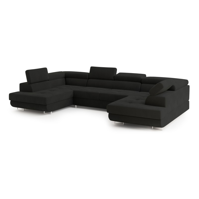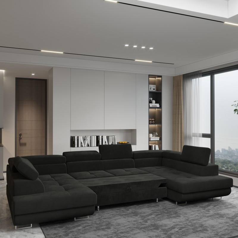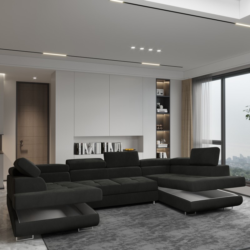Masseno Narożnik RAGGIO z funkcją spania i pojemnikiem na pościel Narozniki U, Rozkładana sofa - Czarny, MONOLITH 95