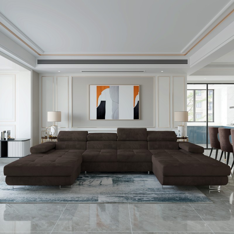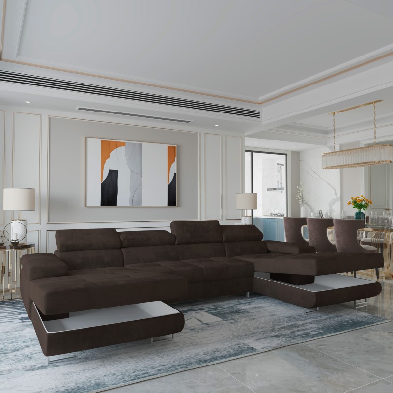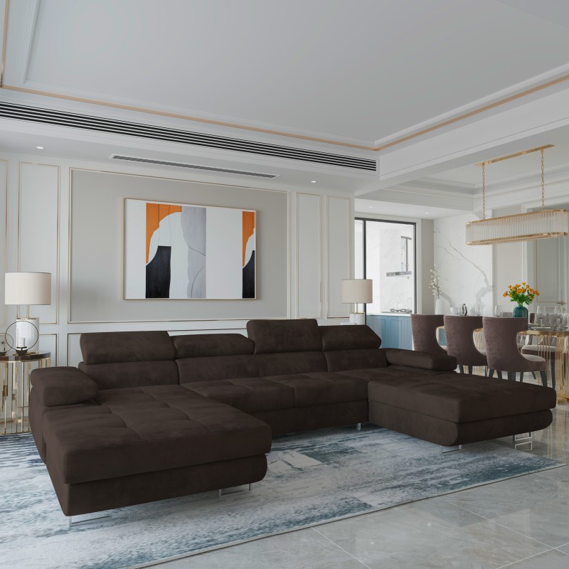 Pozwól, aby LYKKE stał się centralnym punktem Twojego salonu – miejscem, gdzie codzienne chwile zamieniają się w niezapomniane wspomnienia. Ten przestronny nowoczesny narożnik do salonu w kształcie litery „U” został stworzony, by zapewnić maksymalny relaks całej rodzinie. Dzięki głębokiemu siedzisku i regulowanym zagłówkom, każdy znajdzie tu idealną pozycję do odpoczynku, niezależnie od tego, czy potrzebuje chwili wytchnienia z ulubioną książką, czy planuje wieczorny seans filmowy w gronie bliskich.
