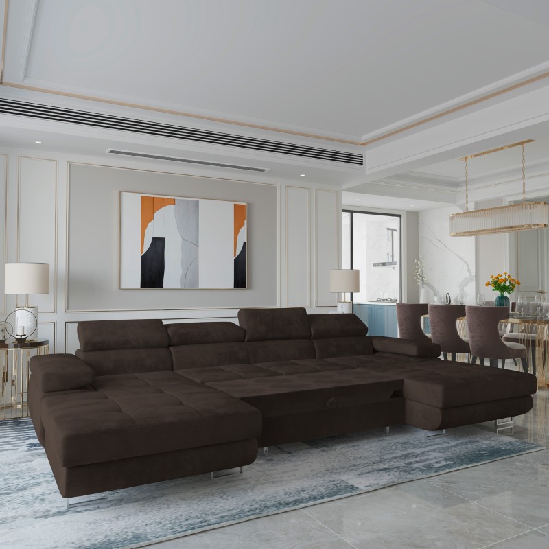 - Doskonały dla tych, którzy często przyjmują gości – funkcjonalny narożnik z funkcją spania zapewni im wygodne miejsce do noclegu bez konieczności rezygnacji ze stylu.