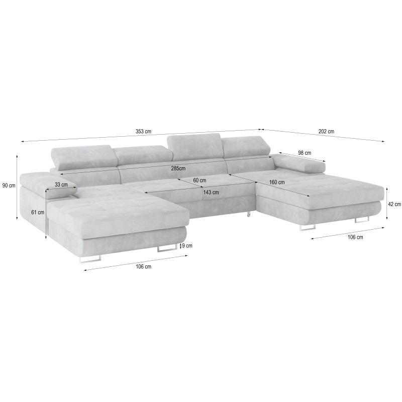 - Funkcja spania na każdą okazję: narożnik rozkładany z intuicyjnym mechanizmem typu „wózek” pozwala na szybkie i bezproblemowe przekształcenie sofy w przestronne łóżko o powierzchni 125x285 cm – idealne zarówno na co dzień, jak i dla gości.