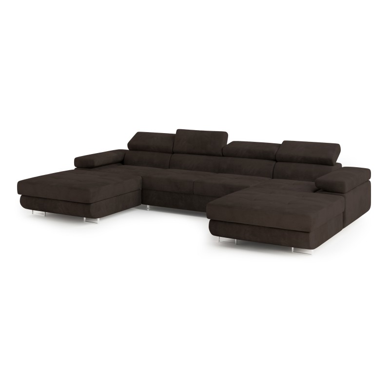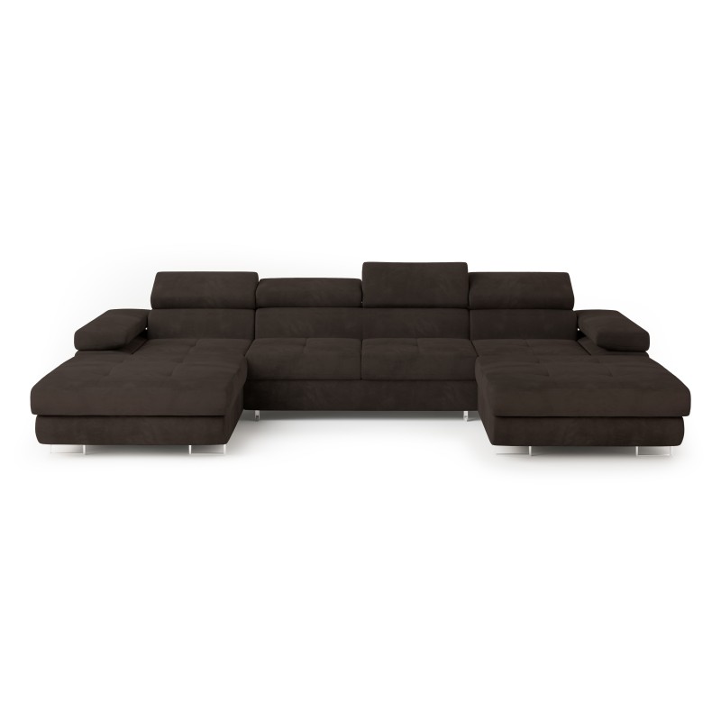 Masseno Narożnik LYKKE z funkcją spania i pojemnikiem na pościel Narozniki U, Rozkładana sofa - Brązowy, MONOLITH 29