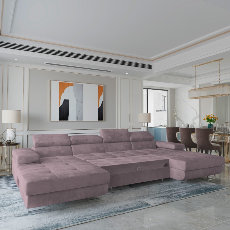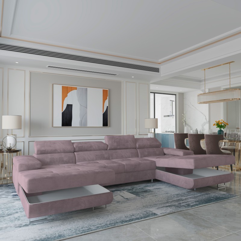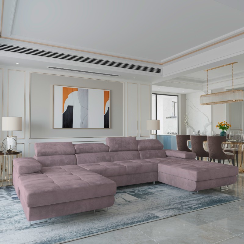 Pozwól, aby LYKKE stał się centralnym punktem Twojego salonu – miejscem, gdzie codzienne chwile zamieniają się w niezapomniane wspomnienia. Ten przestronny nowoczesny narożnik do salonu w kształcie litery „U” został stworzony, by zapewnić maksymalny relaks całej rodzinie. Dzięki głębokiemu siedzisku i regulowanym zagłówkom, każdy znajdzie tu idealną pozycję do odpoczynku, niezależnie od tego, czy potrzebuje chwili wytchnienia z ulubioną książką, czy planuje wieczorny seans filmowy w gronie bliskich.