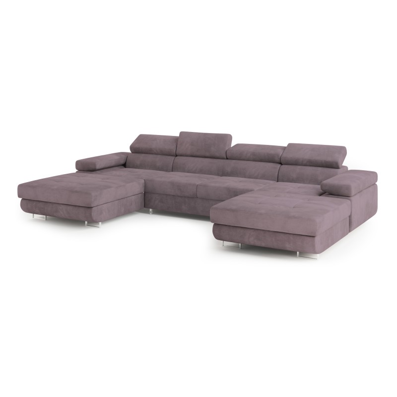 Masseno Narożnik LYKKE z funkcją spania i pojemnikiem na pościel Narozniki U, Rozkładana sofa - Wrzosowy, MONOLITH 62
