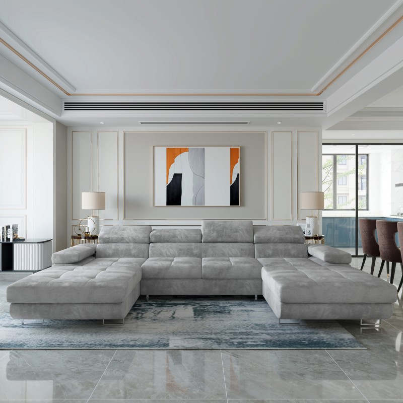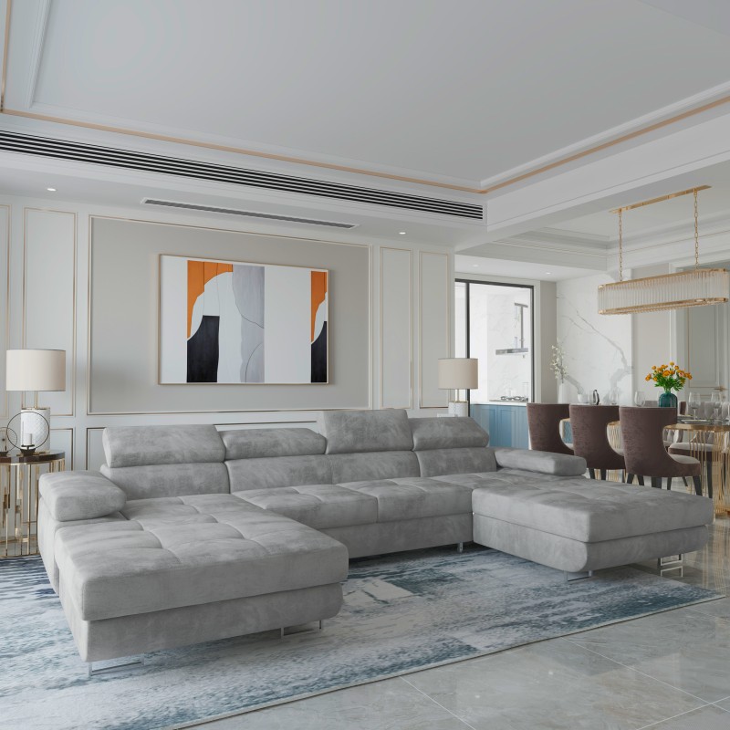 Pozwól, aby LYKKE stał się centralnym punktem Twojego salonu – miejscem, gdzie codzienne chwile zamieniają się w niezapomniane wspomnienia. Ten przestronny nowoczesny narożnik do salonu w kształcie litery „U” został stworzony, by zapewnić maksymalny relaks całej rodzinie. Dzięki głębokiemu siedzisku i regulowanym zagłówkom, każdy znajdzie tu idealną pozycję do odpoczynku, niezależnie od tego, czy potrzebuje chwili wytchnienia z ulubioną książką, czy planuje wieczorny seans filmowy w gronie bliskich.