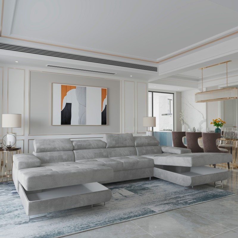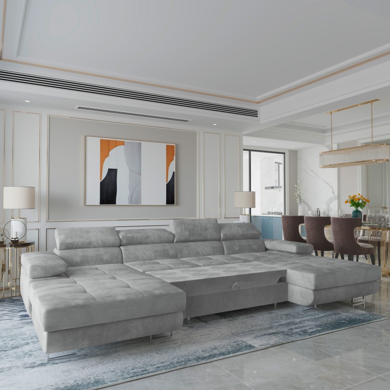 - Doskonały dla tych, którzy często przyjmują gości – funkcjonalny narożnik z funkcją spania zapewni im wygodne miejsce do noclegu bez konieczności rezygnacji ze stylu.