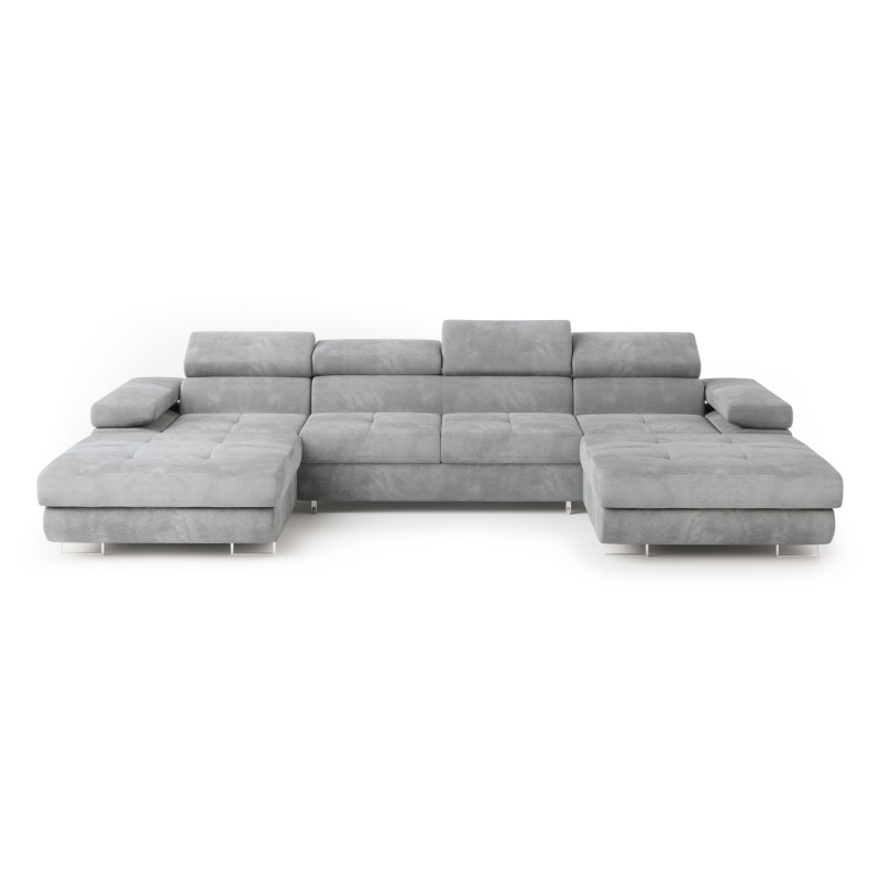 Masseno Narożnik LYKKE z funkcją spania i pojemnikiem na pościel Narozniki U, Rozkładana sofa - Jasnoszary, MONOLITH 84