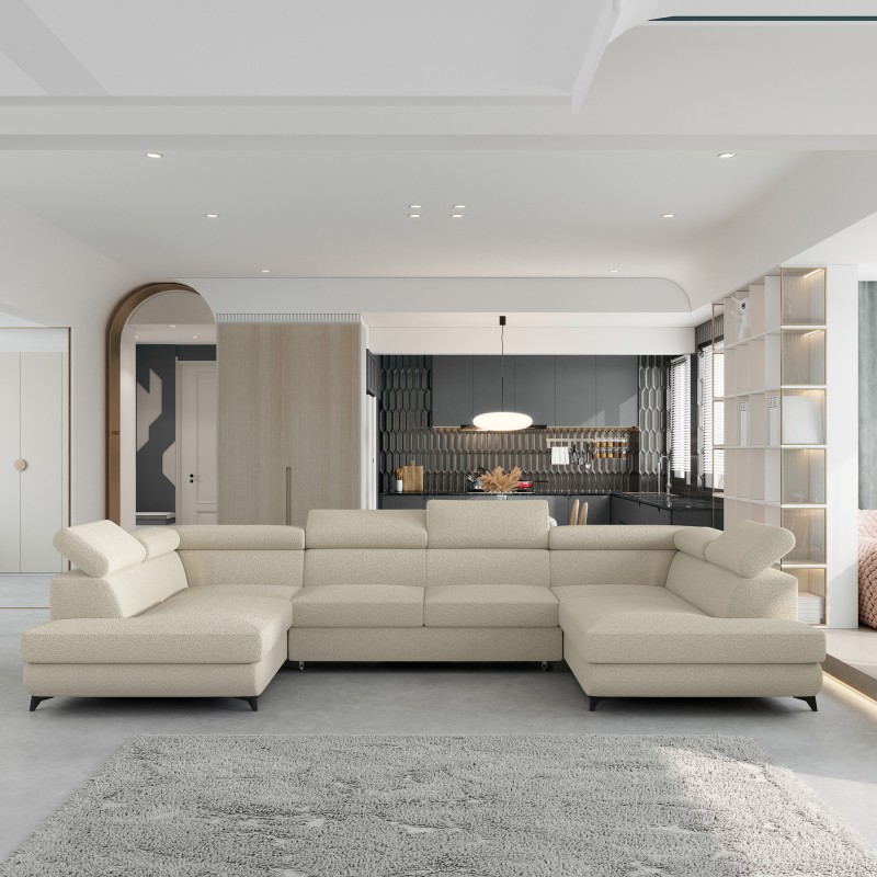 Masseno Narożnik VINTESSA z funkcją spania i pojemnikiem na pościel Narozniki U, Rozkładana sofa - Kremowy, QUELLE 02