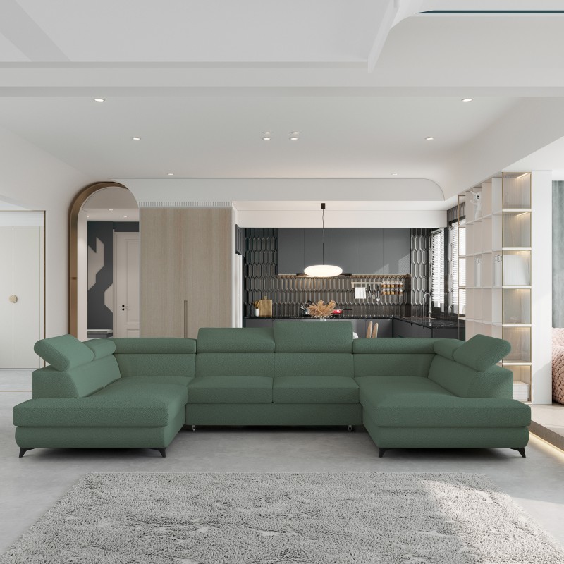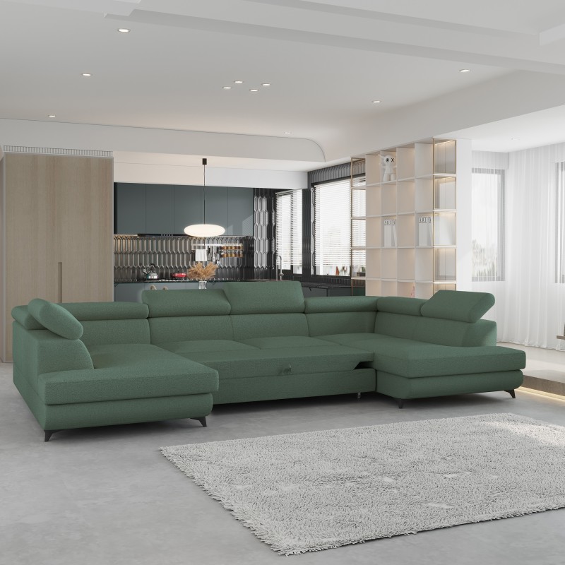 Masseno Narożnik VINTESSA z funkcją spania i pojemnikiem na pościel Narozniki U, Rozkładana sofa - Zielony, QUELLE 37