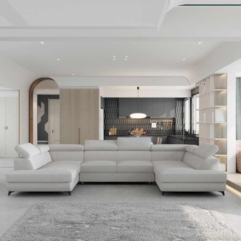 Masseno Narożnik VINTESSA z funkcją spania i pojemnikiem na pościel Narozniki U, Rozkładana sofa - Jasnoszary, QUELLE 83