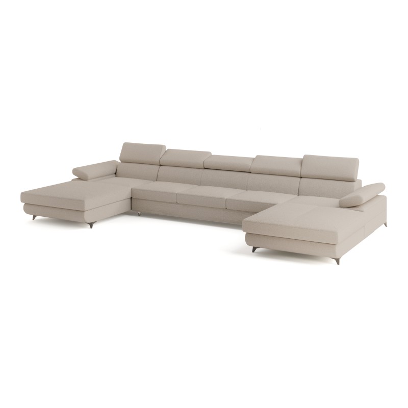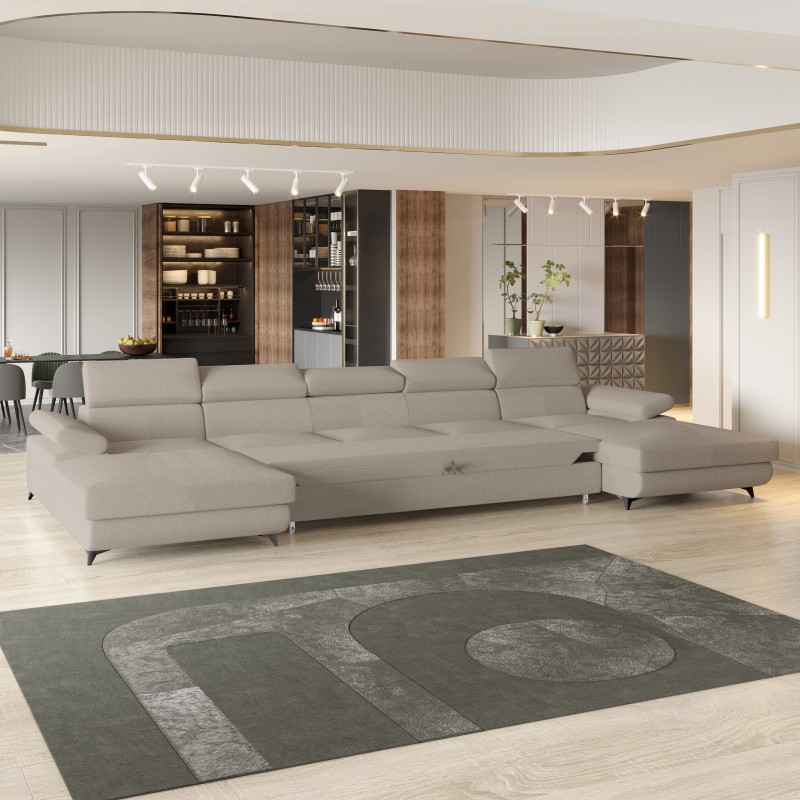 Masseno Narożnik VIVENTE z funkcją spania i pojemnikiem na pościel Narozniki U, Rozkładana sofa - Beżowy, QUELLE 05