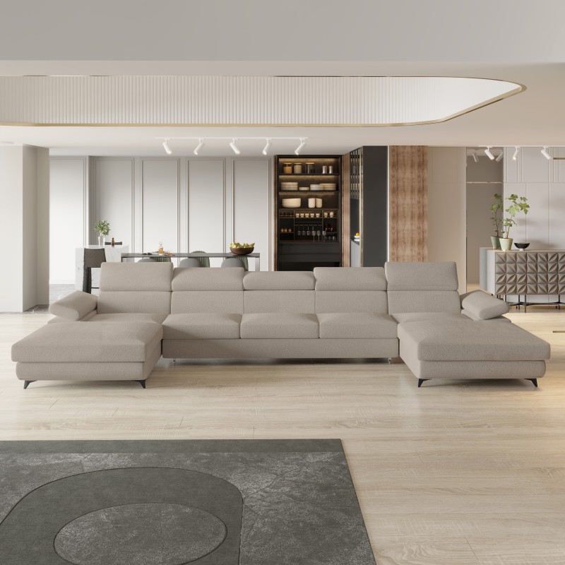 Odkryj narożnik VIVENTE, który redefiniuje pojęcie relaksu i staje się sercem Twojego domu. To coś więcej niż mebel – to centrum życia rodzinnego, idealne do celebrowania każdej chwili, od spokojnych wieczorów po radosne spotkania w gronie najbliższych. Jego monumentalna, a zarazem subtelna bryła w kształcie litery "U" została zaprojektowana z myślą o najwyższym komforcie, tworząc luksusową przestrzeń, która zachęca do odpoczynku i wspólnego spędzania czasu.