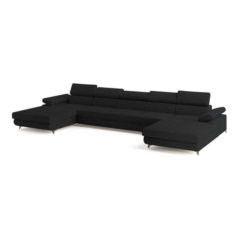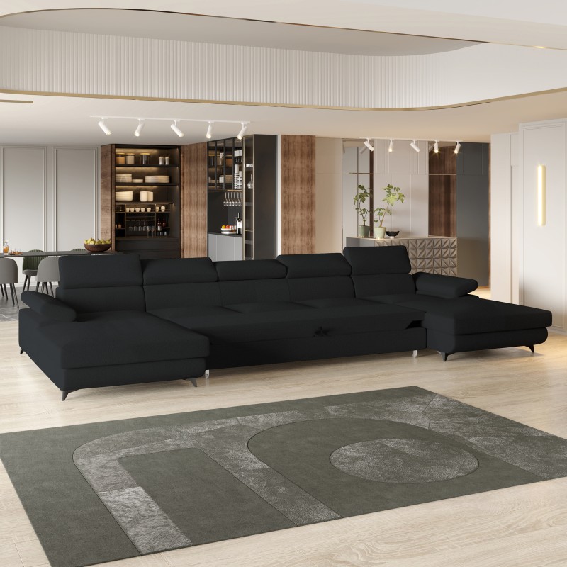 Masseno Narożnik VIVENTE z funkcją spania i pojemnikiem na pościel Narozniki U, Rozkładana sofa - Czarny, QUELLE 100