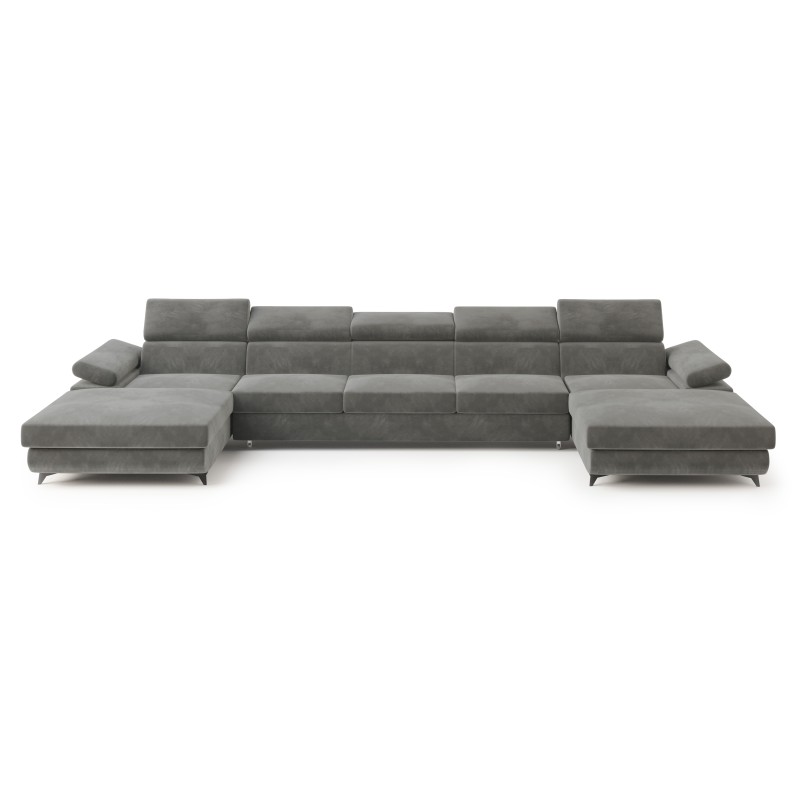 Masseno Narożnik VIVENTE z funkcją spania i pojemnikiem na pościel Narozniki U, Rozkładana sofa - Szary, MONOLITH 85