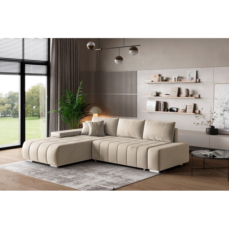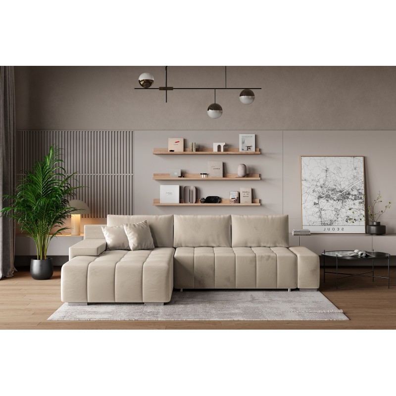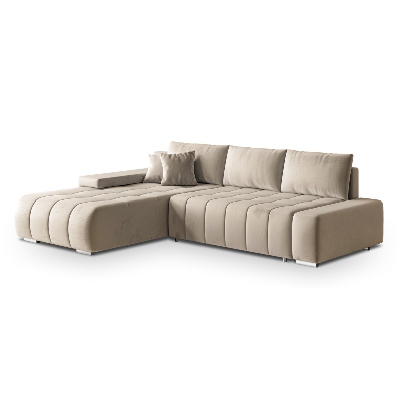 Masseno Narożnik ALESE z funkcją spania i pojemnikiem na pościel Narozniki L, Rozkładana sofa - Kremowy, MONOLITH 02