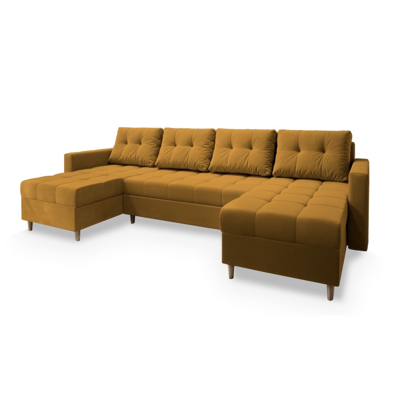 Masseno Narożnik MILO z funkcją spania i pojemnikiem na pościel Narozniki U, Rozkładana sofa - Żółty, KRONOS 01