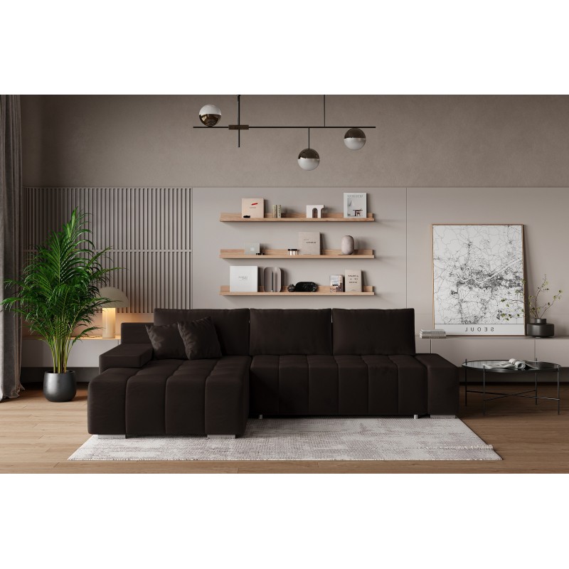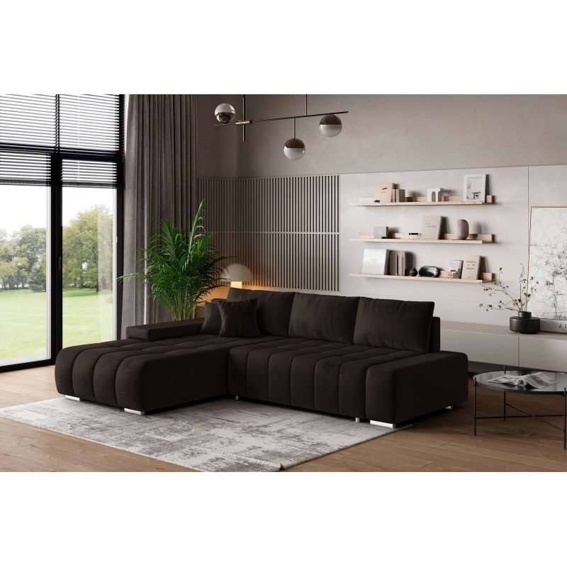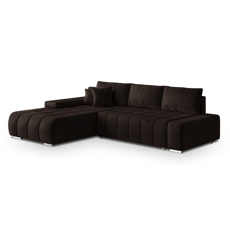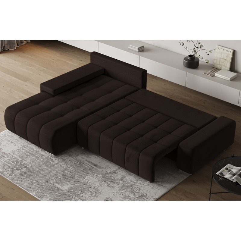 Masseno Narożnik ALESE z funkcją spania i pojemnikiem na pościel Narozniki L, Rozkładana sofa - Brązowy, MONOLITH 29