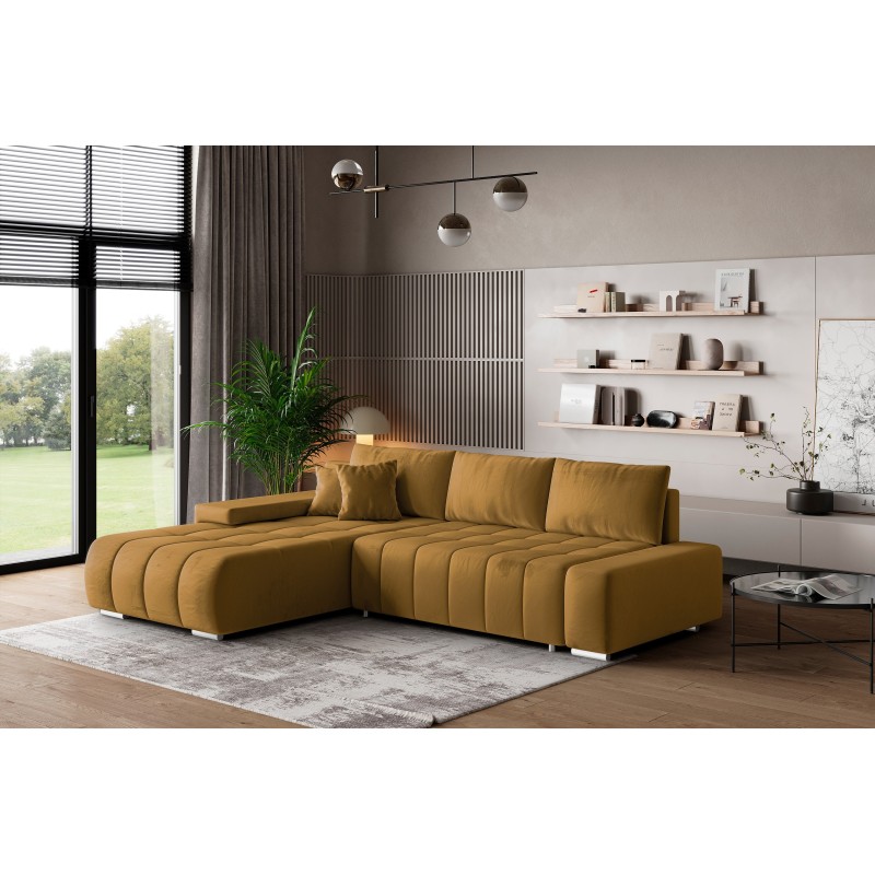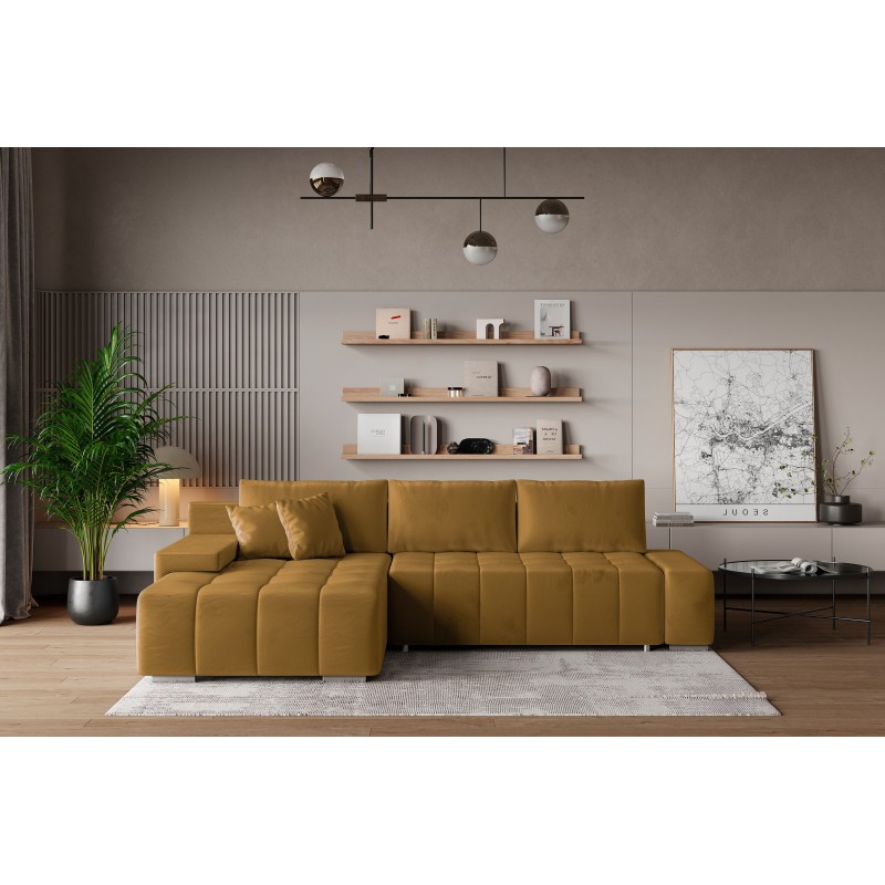 Masseno Narożnik ALESE z funkcją spania i pojemnikiem na pościel Narozniki L, Rozkładana sofa - Żółty, MONOLITH 48