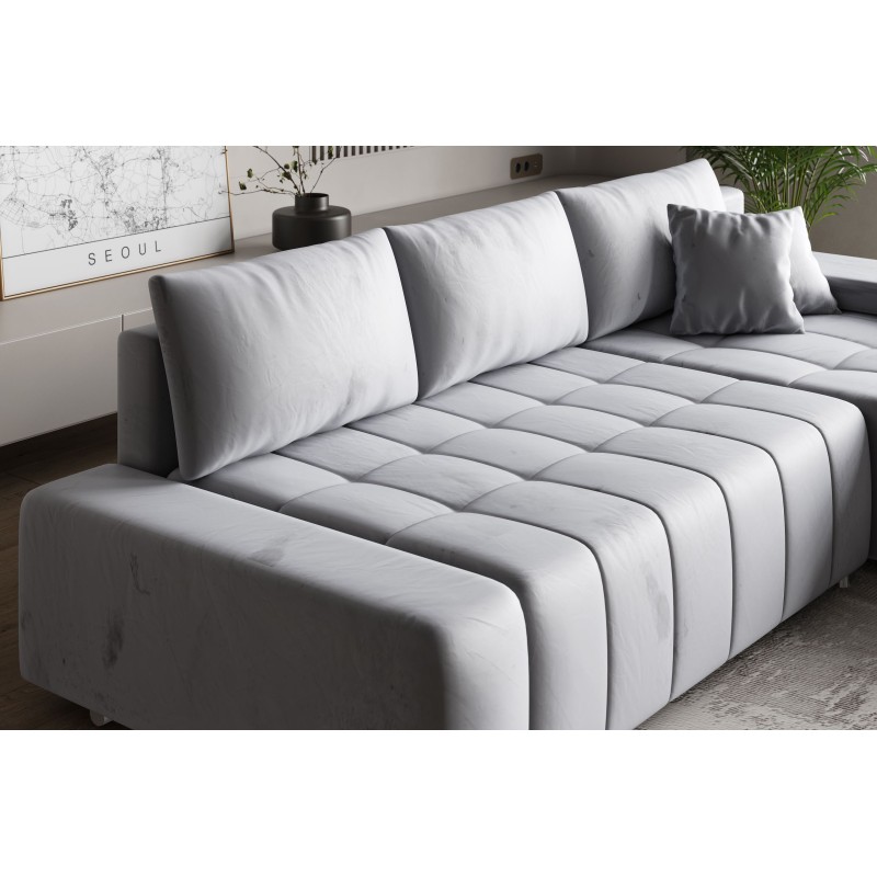 Luksusowa tkanina monolith z weluru najwyższej jakości posiada specjalną powłokę hydrofobową, która skutecznie ogranicza wchłanianie wody i ułatwia czyszczenie mebla. Z szeroką gamą kolorów możesz idealnie dopasować narożnik do wystroju swojego salonu.