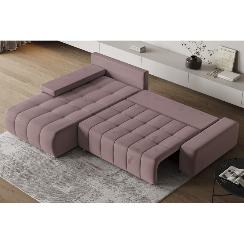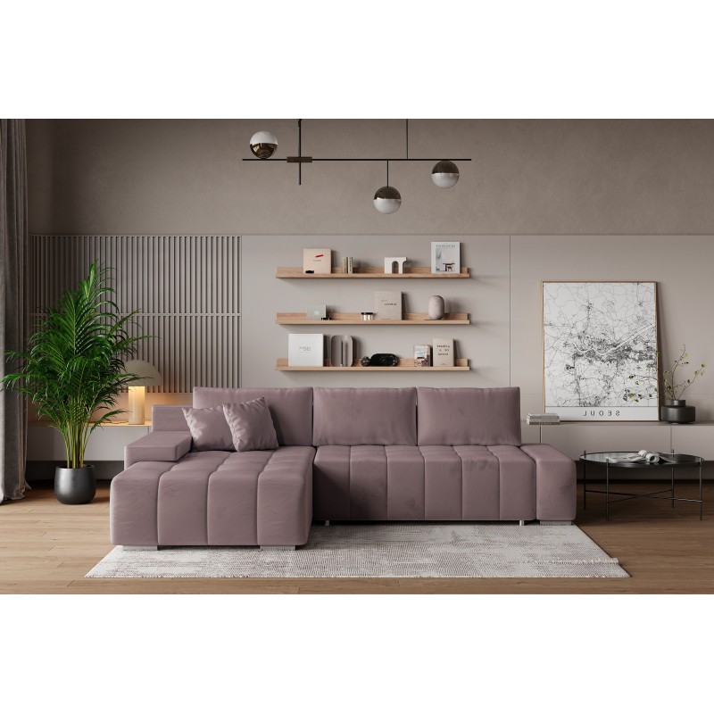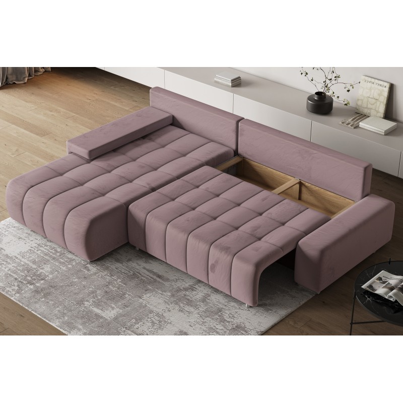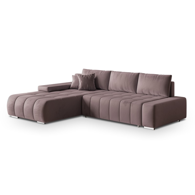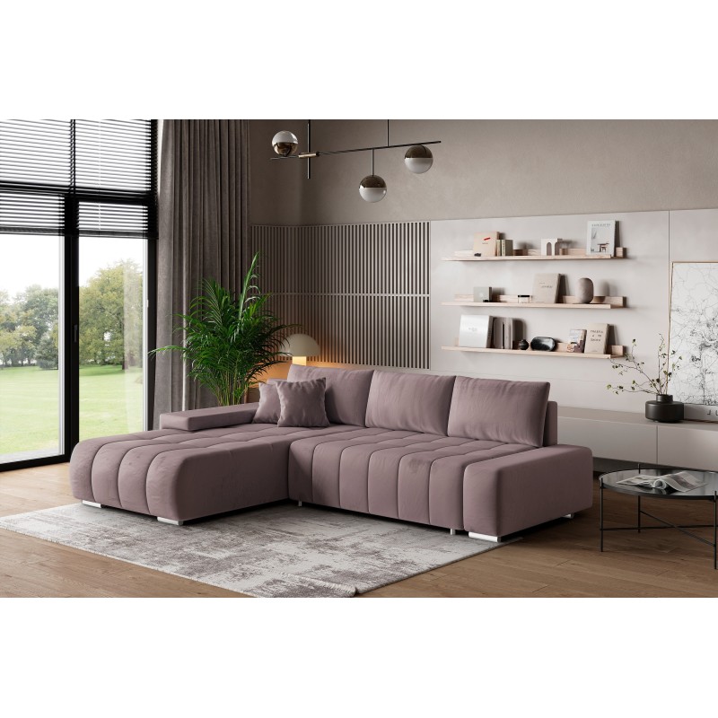 Masseno Narożnik ALESE z funkcją spania i pojemnikiem na pościel Narozniki L, Rozkładana sofa - Wrzosowy, MONOLITH 62