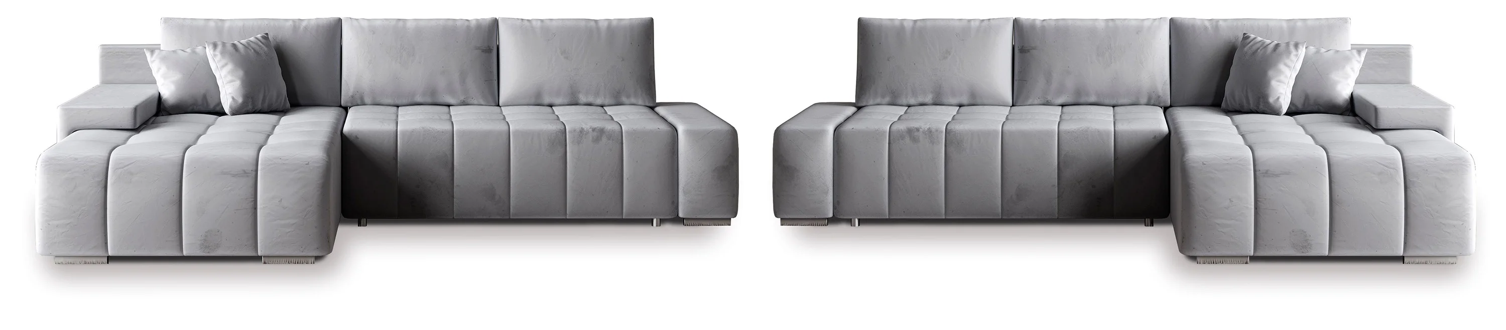 Narożnik występuje zarówno w wersji prawostronnej, jak i lewostronnej, podczas zamówienia ważne jest wybranie jego strony ustawienia. Jest jednocześnie meblem wolnostojącym - każda strona jest obita tym samym rodzajem materiału. Dzięki tej wszechstronności możesz go idealnie dopasować do swojego pomieszczenia, tworząc centralną wyspę w swoim salonie.
