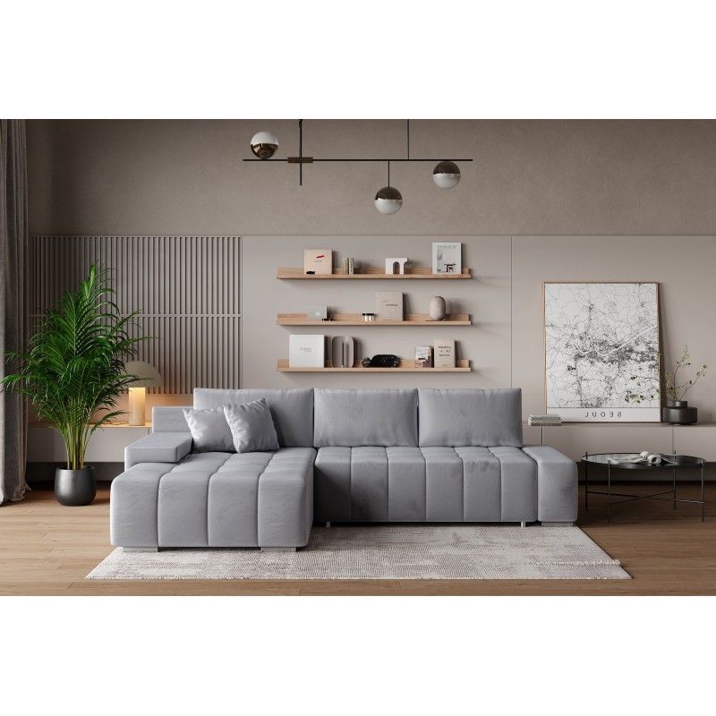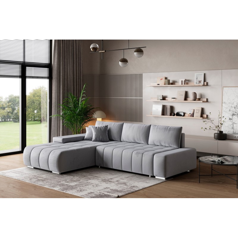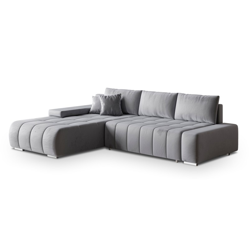 Masseno Narożnik ALESE z funkcją spania i pojemnikiem na pościel Narozniki L, Rozkładana sofa - Jasnoszary, MONOLITH 84