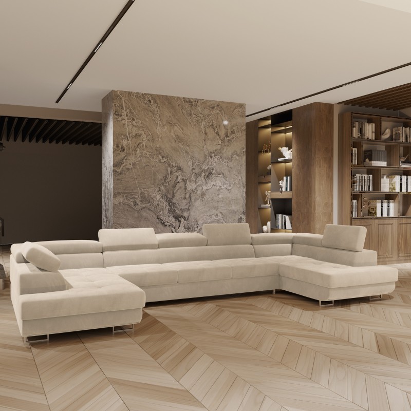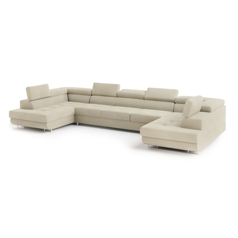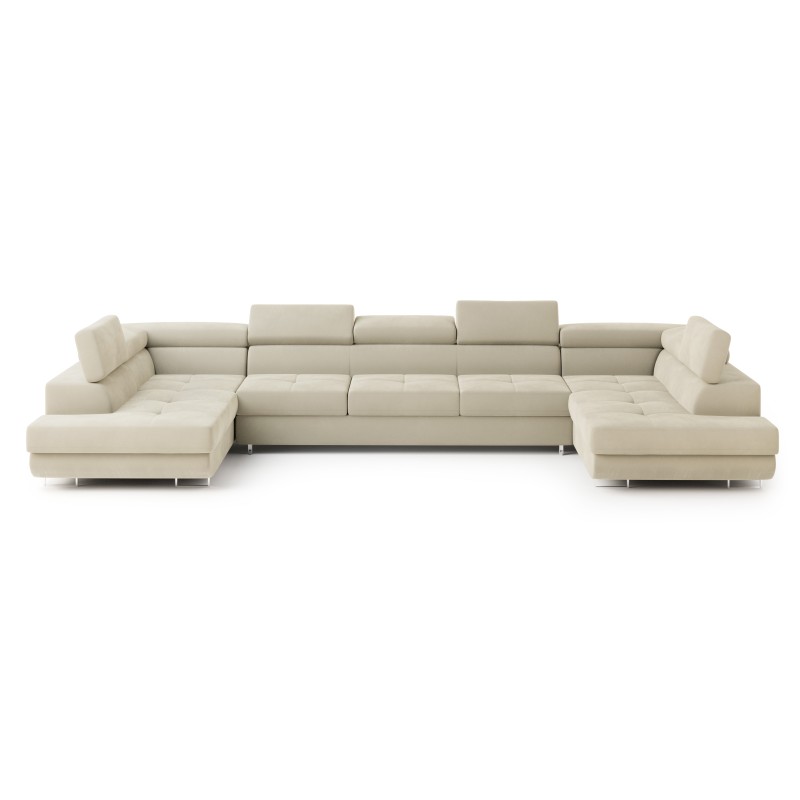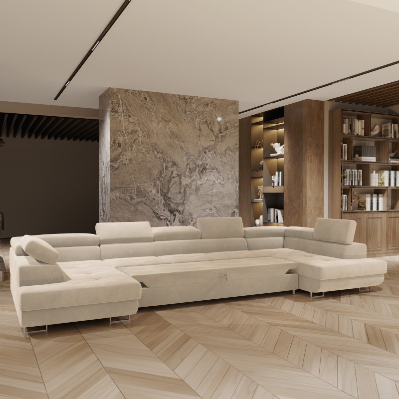 Masseno Narożnik ISOLANO z funkcją spania i pojemnikiem na pościel Narozniki U, Rozkładana sofa - Kremowy, MONOLITH 04