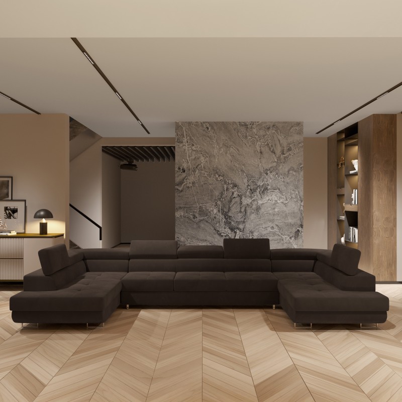 Masseno Narożnik ISOLANO z funkcją spania i pojemnikiem na pościel Narozniki U, Rozkładana sofa - Brązowy, MONOLITH 29