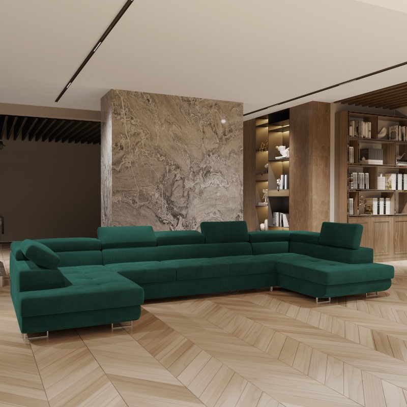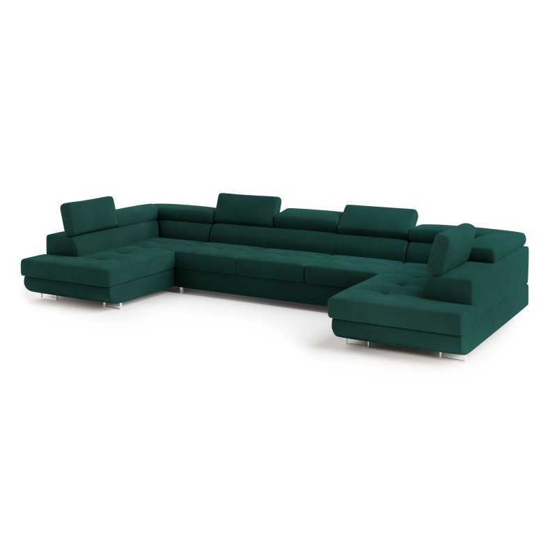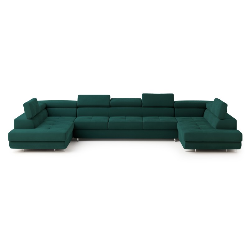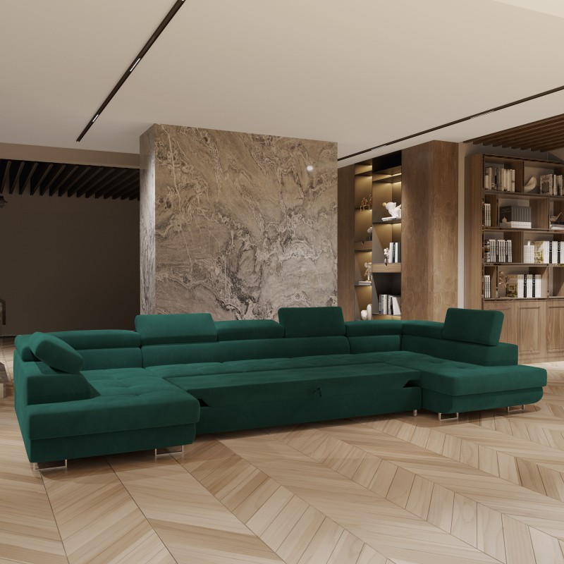 Masseno Narożnik ISOLANO z funkcją spania i pojemnikiem na pościel Narozniki U, Rozkładana sofa - Zielony, MONOLITH 37