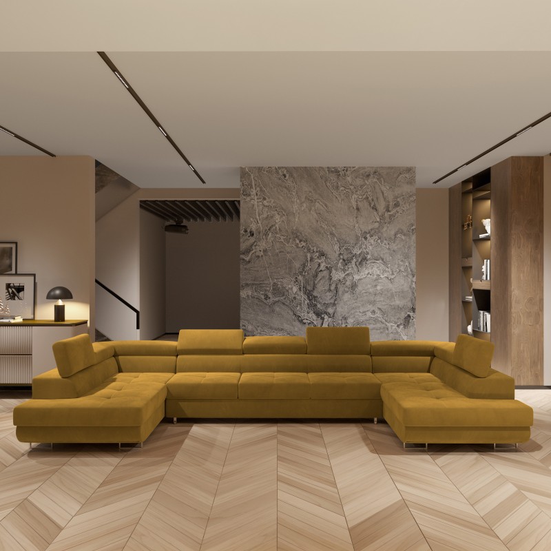 Masseno Narożnik ISOLANO z funkcją spania i pojemnikiem na pościel Narozniki U, Rozkładana sofa - Żółty, MONOLITH 48