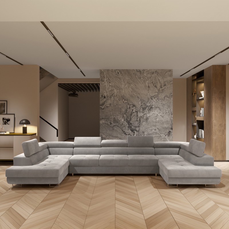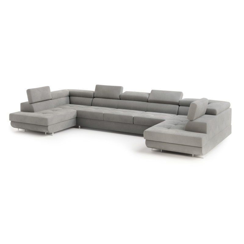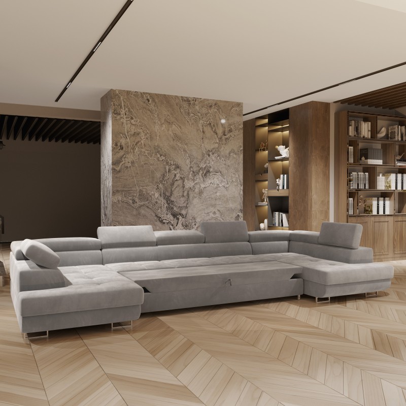 Masseno Narożnik ISOLANO z funkcją spania i pojemnikiem na pościel Narozniki U, Rozkładana sofa - Jasnoszary, MONOLITH 84