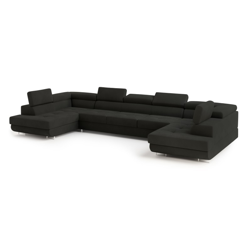 Masseno Narożnik ISOLANO z funkcją spania i pojemnikiem na pościel Narozniki U, Rozkładana sofa - Czarny, MONOLITH 95