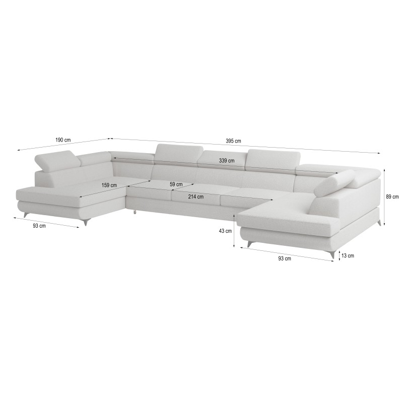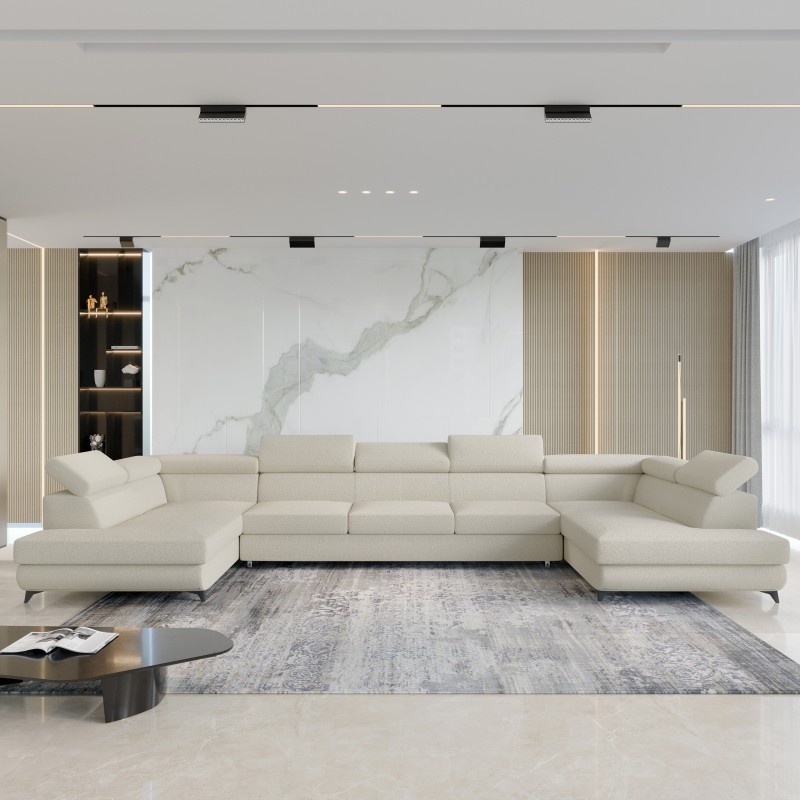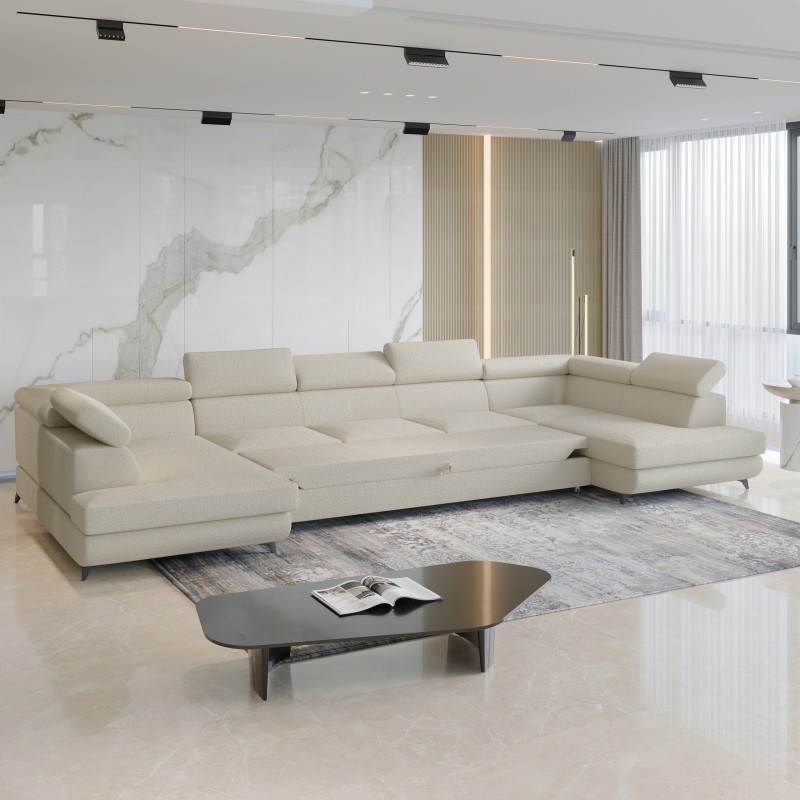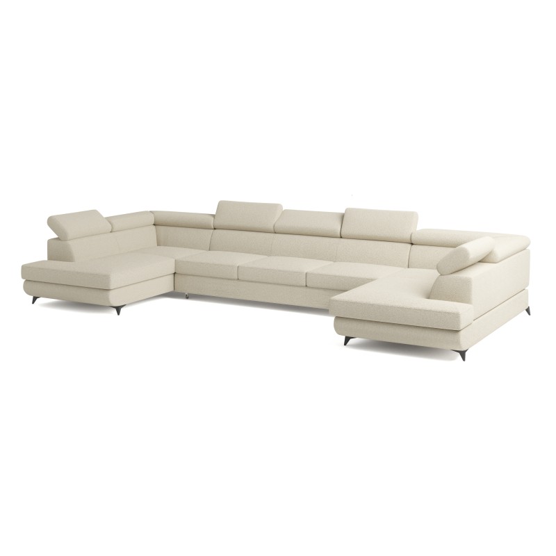 Masseno Narożnik URMANO z funkcją spania i pojemnikiem na pościel Narozniki U, Rozkładana sofa - Kremowy, QUELLE 02